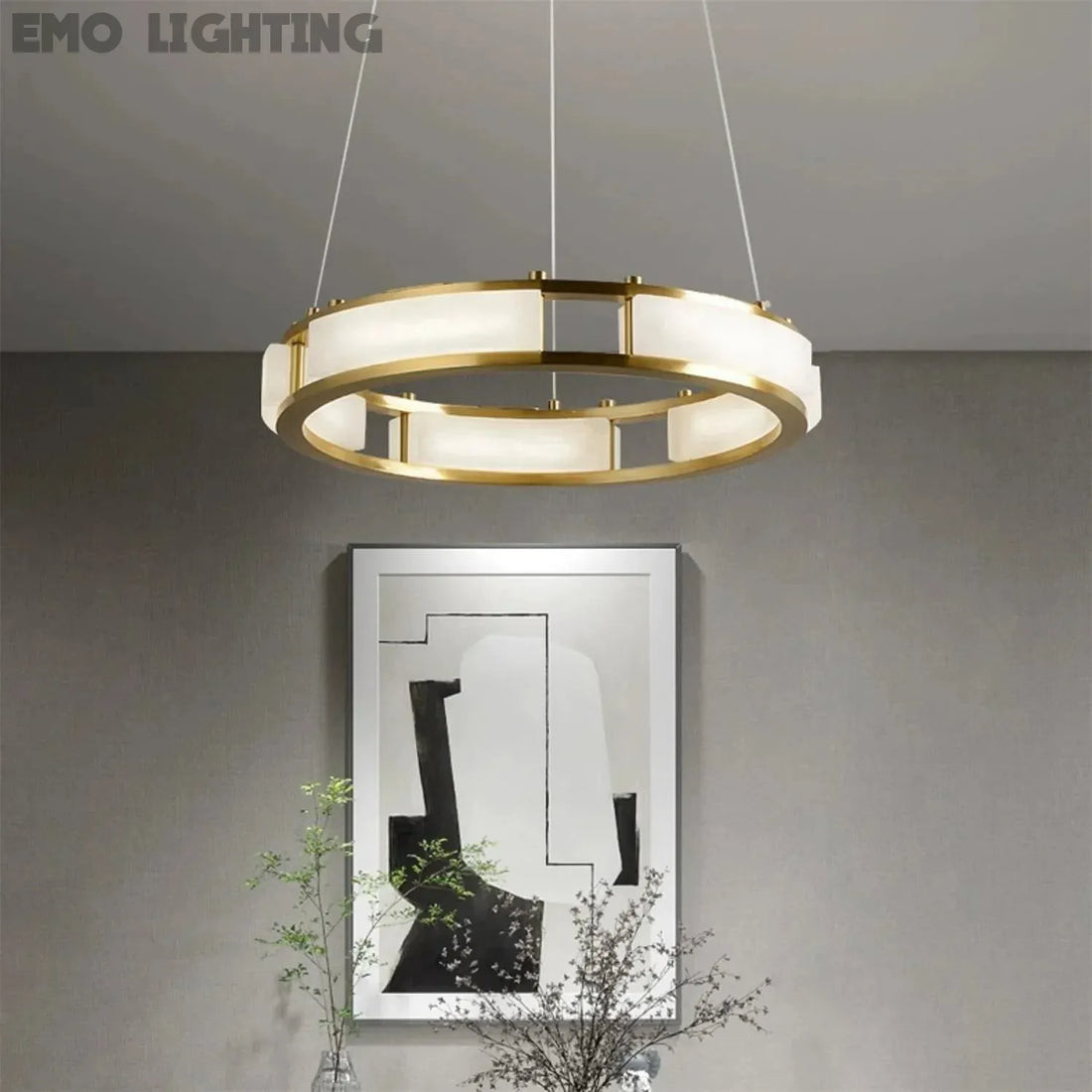 Elevate your living space with our Circle Alabaster Chandelier. Crafted with high-quality materials, this elegant...