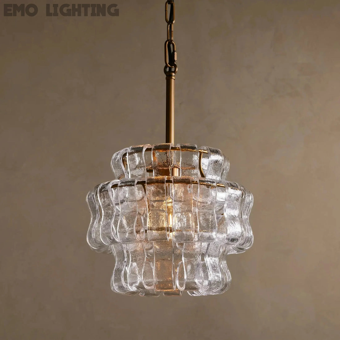 Inspired by the famous Italian decorative glass, the ghiaccio chandelier artfully diffuses light through curved...