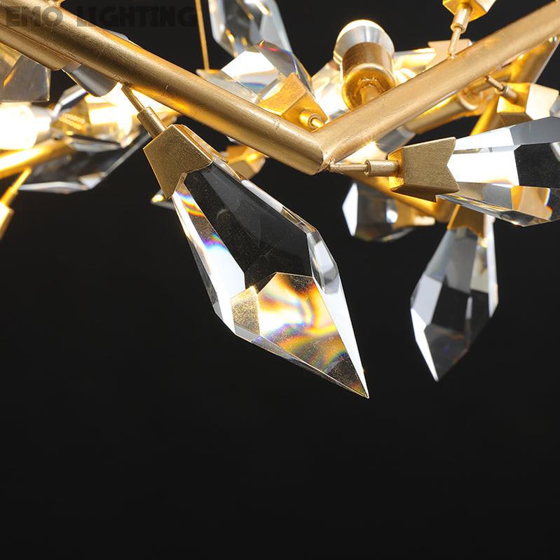 Inspired by nature and its majestic forests, this gold leafed Foret pendant features modern branches adorned with bold, hand-cut faceted crystal leaves. Also available in silver leaf.