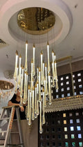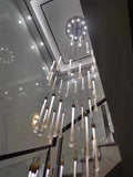Foyer Glass Drops Pendant Chandelier Spiral Staircase High Ceiling Light Fixture In Gold Finish