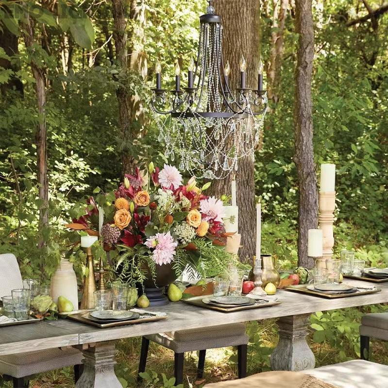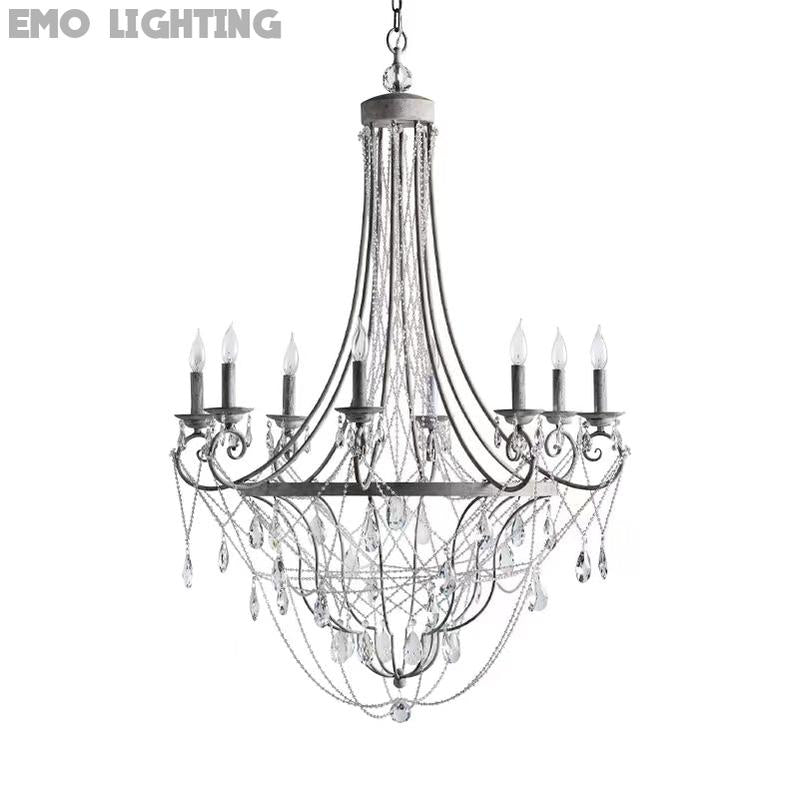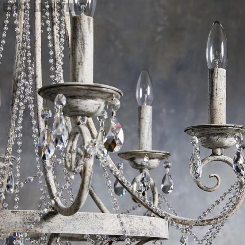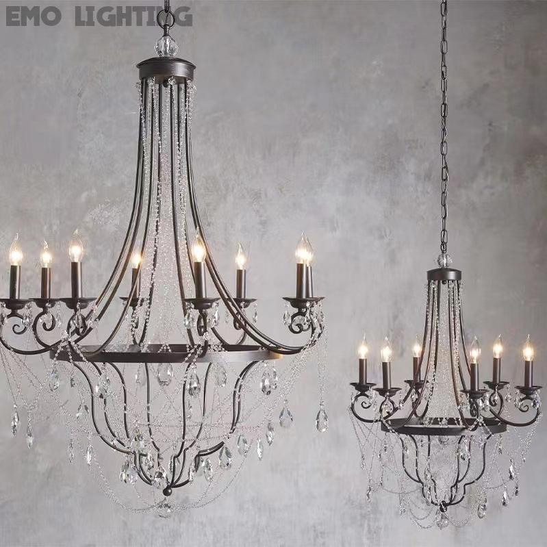 Affordable French Vintage Iron Crystal Pendant Candle Chandelier for Living Room / Restaurant / Cafe / Hotel lobby