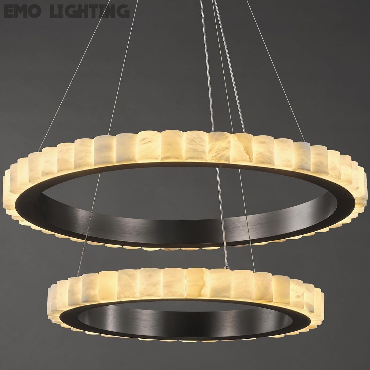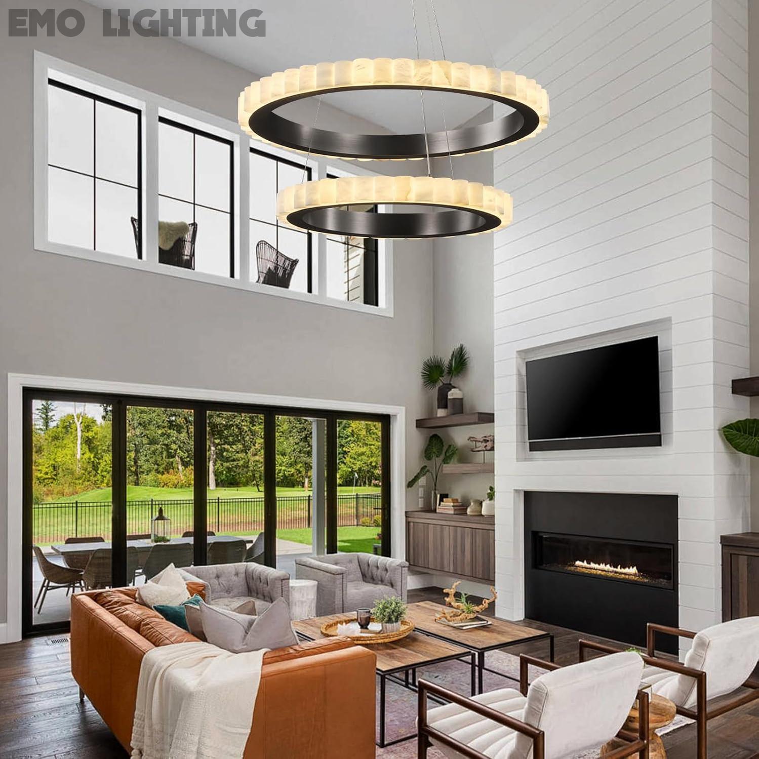 High-Quality Materials¡¿Modern dining room chandelier is made of Spanish alabaster, a natural stone that has been solidified by volcanic lava for millions of years. It is carefully selected and hand-polished. Each piece of marble is a unique texture, a mark of natural formation, which is also its artistic value.