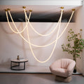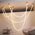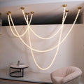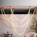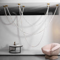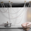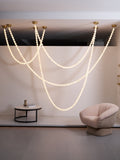 The Alabaster Pearl Necklace Chandelier by emolighting is a breathtaking fusion of sculptural design and refined elegance. Featuring cascading strands of alabaster-like beads, this chandelier mimics the flowing beauty of a pearl necklace draped effortlessly across the ceiling. Each glowing orb casts a warm, diffused light, creating a soft, ambient atmosphere while making a striking visual statement. Anchored by minimalist brass mounts, the flexible arrangement allows for artistic customization in layout and shape. Ideal for luxurious living rooms, grand foyers, or curated retail spaces, this piece embodies emolighting dedication to poetic form and timeless craftsmanship.