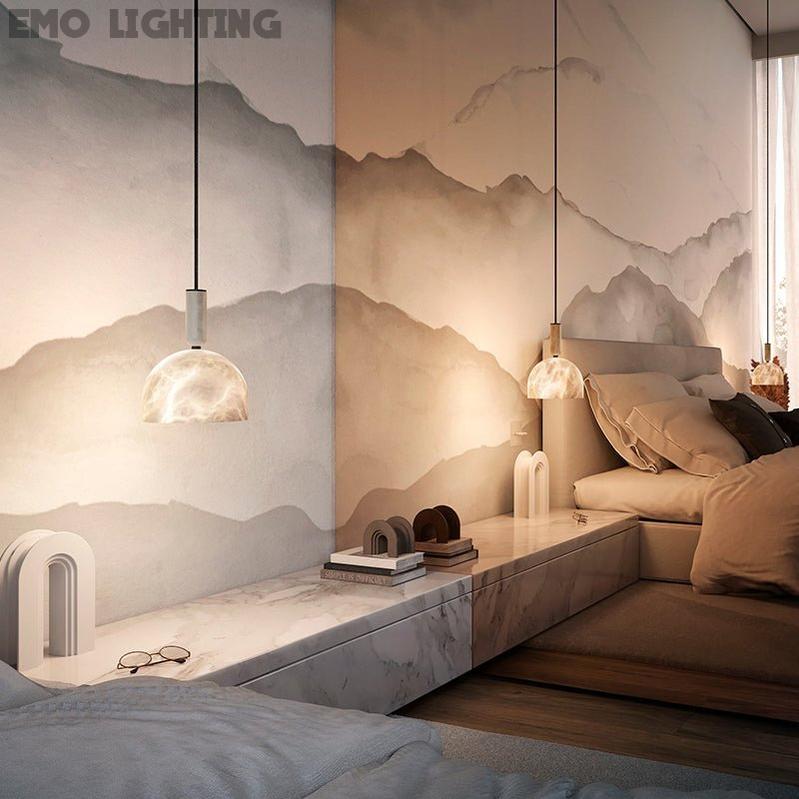 The material of alabaster is Metal & Alabaster, this series is a simple design with a modern style, its stylish style highlights its beauty and makes it give a warm and natural feeling while ensuring the light effect Feel.