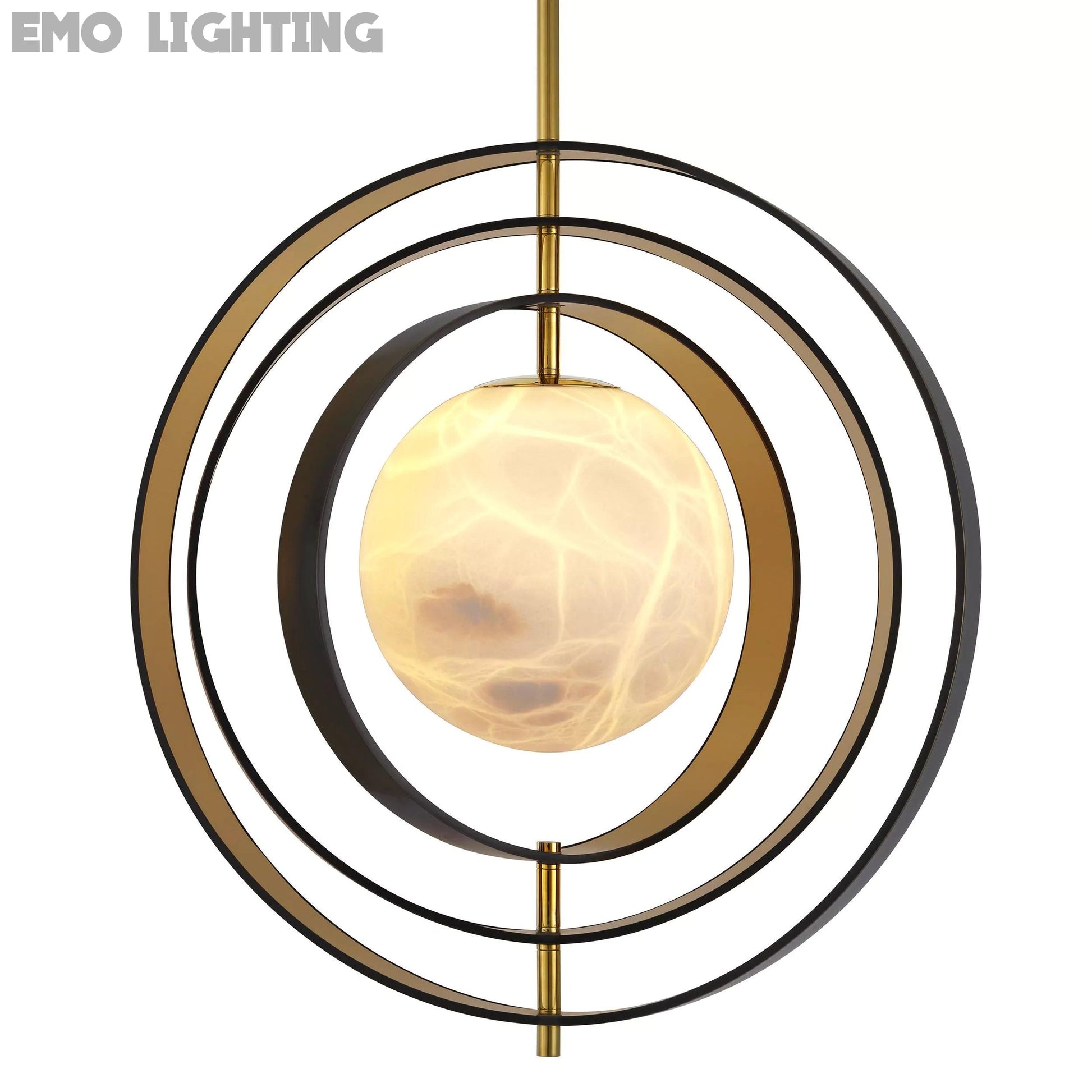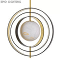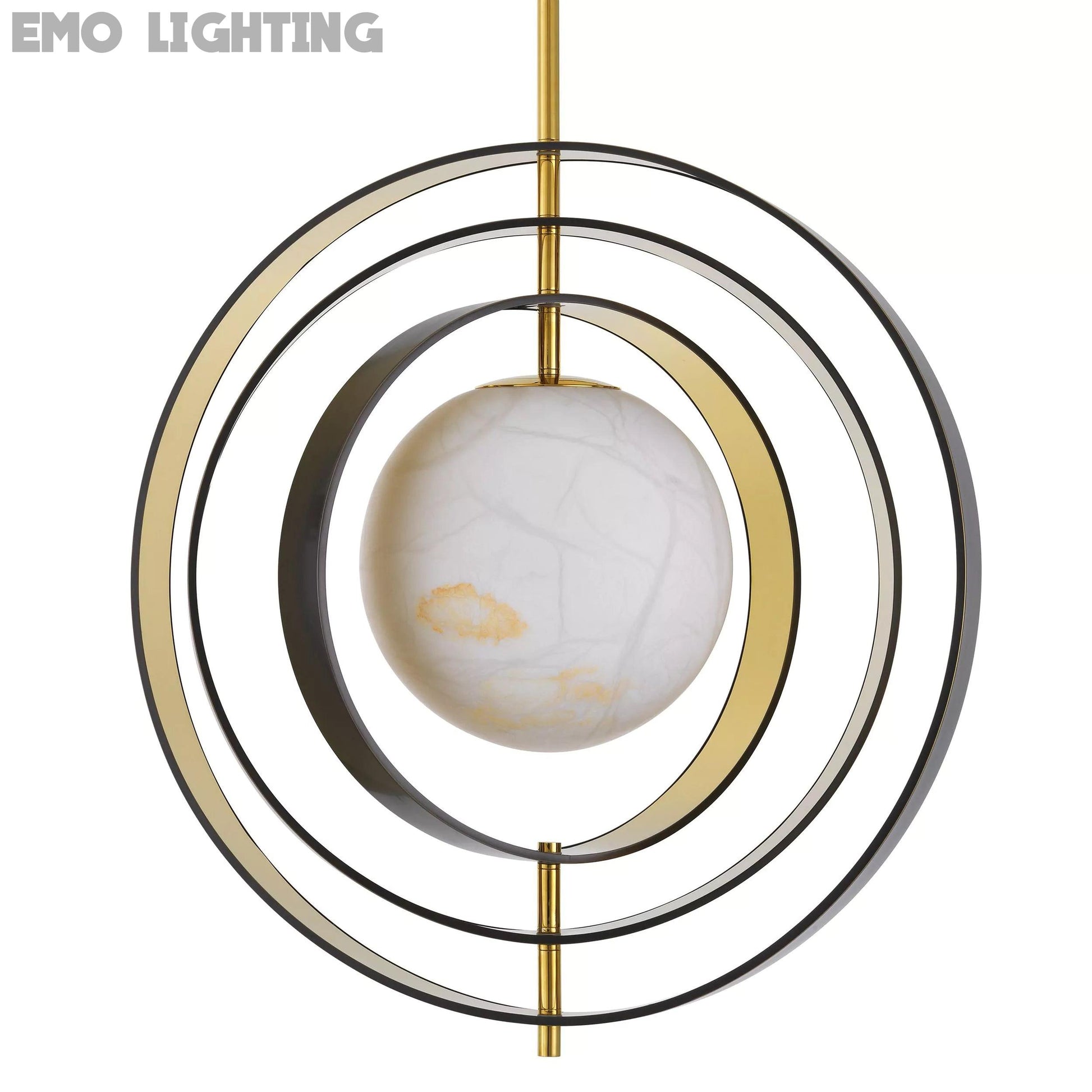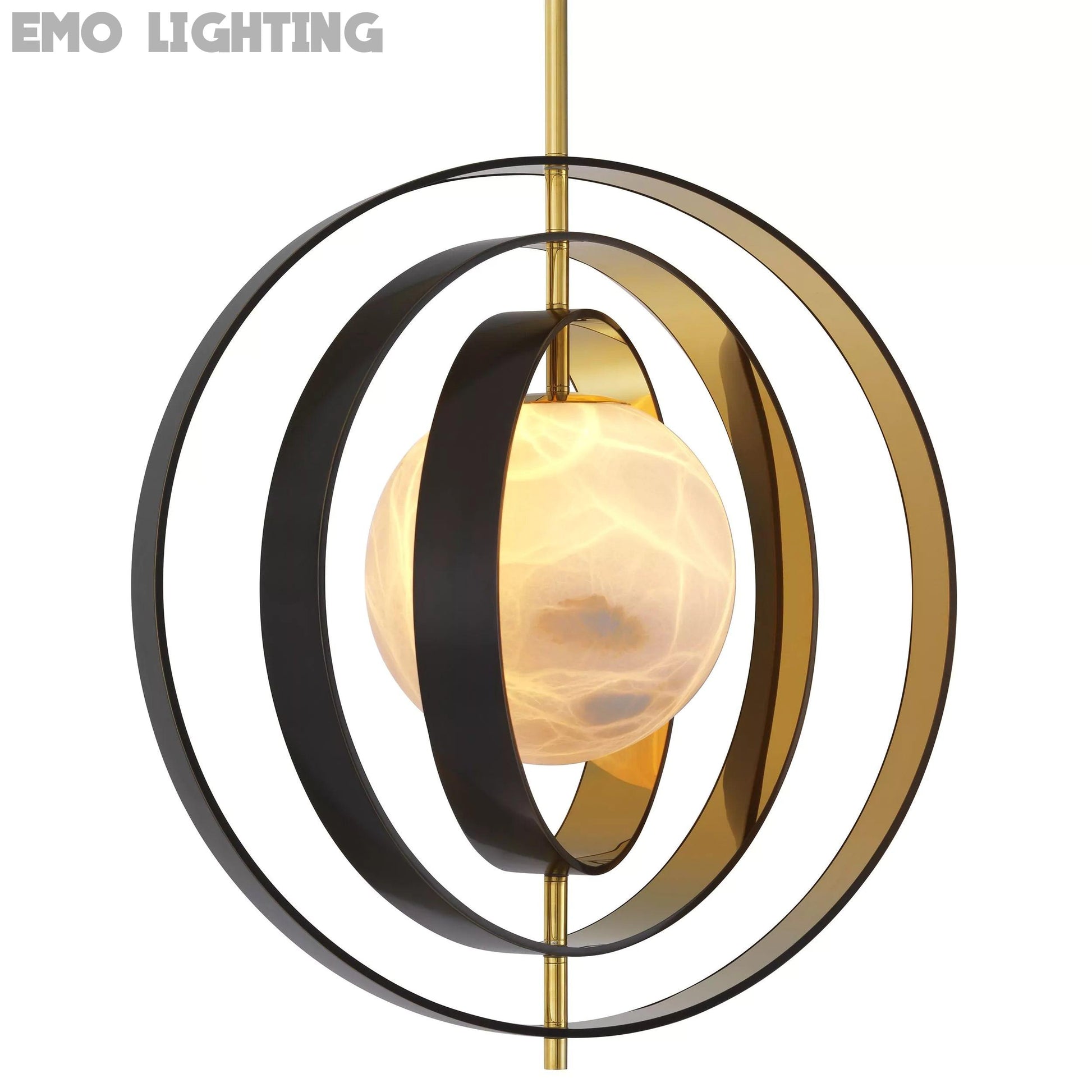 With its galactic appeal, Chandelier Pearl makes a radiant focal point in your home interior. Its pearl-like alabaster shade is surrounded by four metal rings with a bronze highlight finish on the outside and a gold finish on the inside. The rings can be rotated individually.