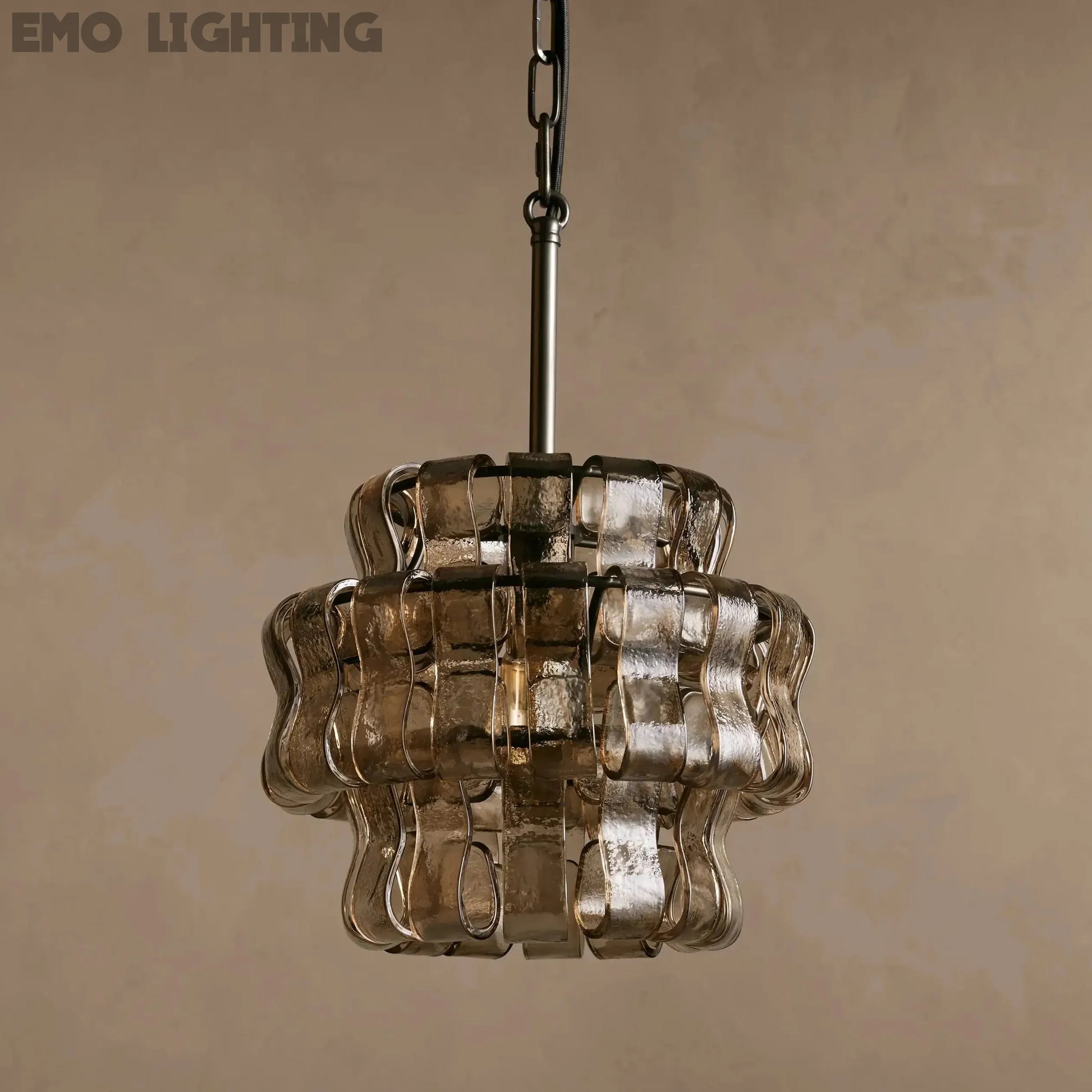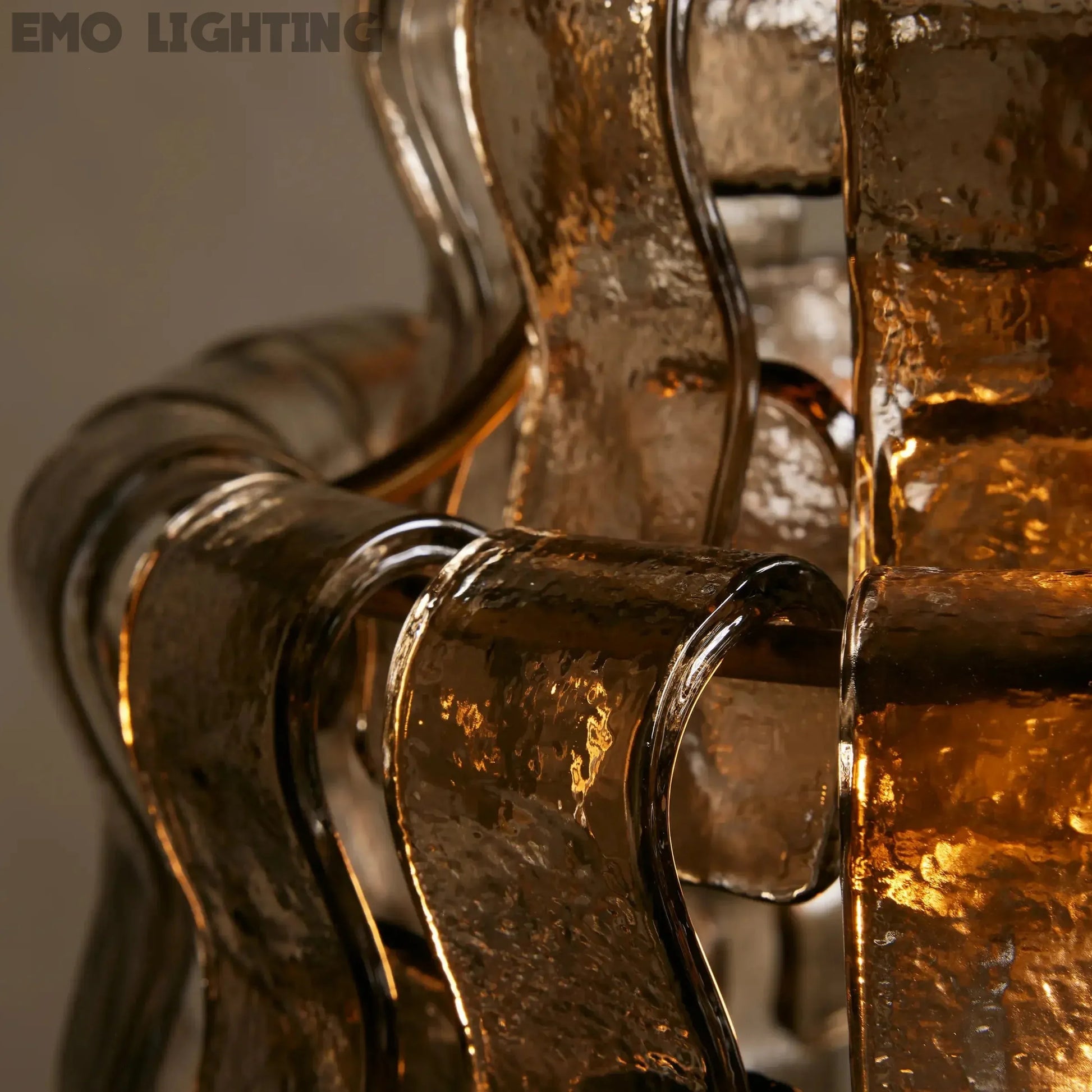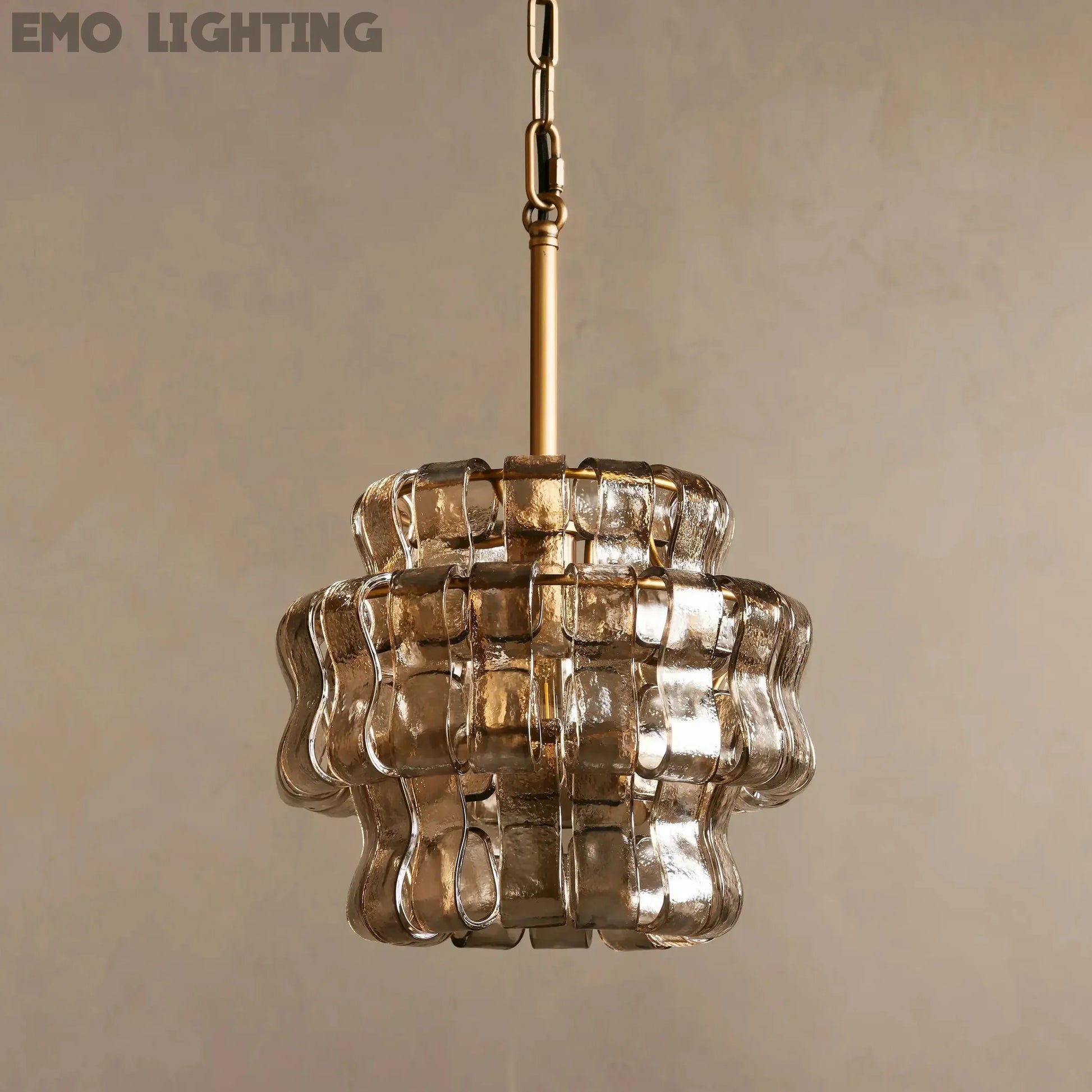Inspired by the famous Italian decorative glass, the ghiaccio chandelier artfully diffuses light through curved textured glass pieces. It features an electroplated brass finish to elegantly illuminate any room.