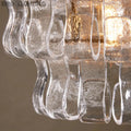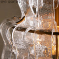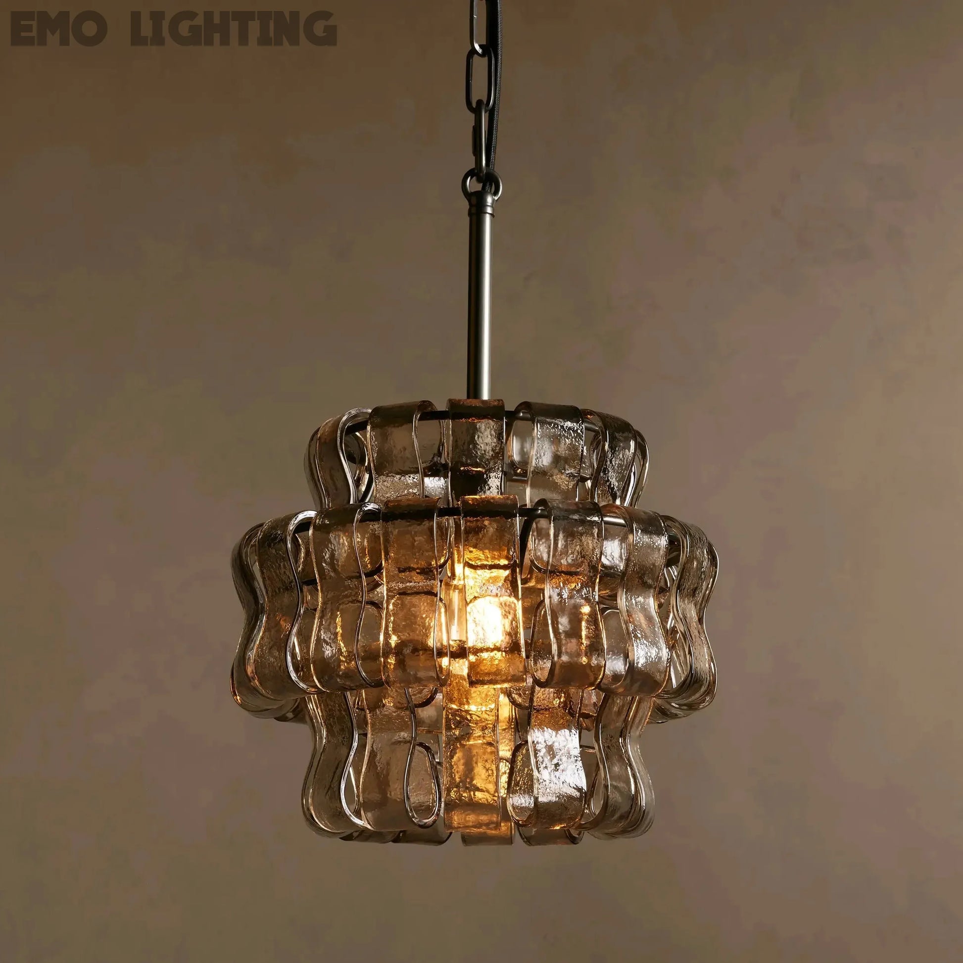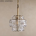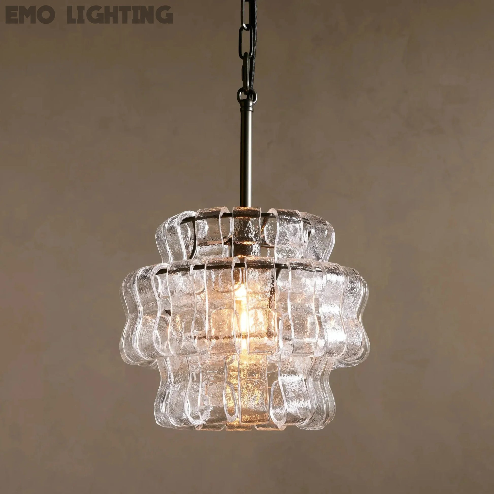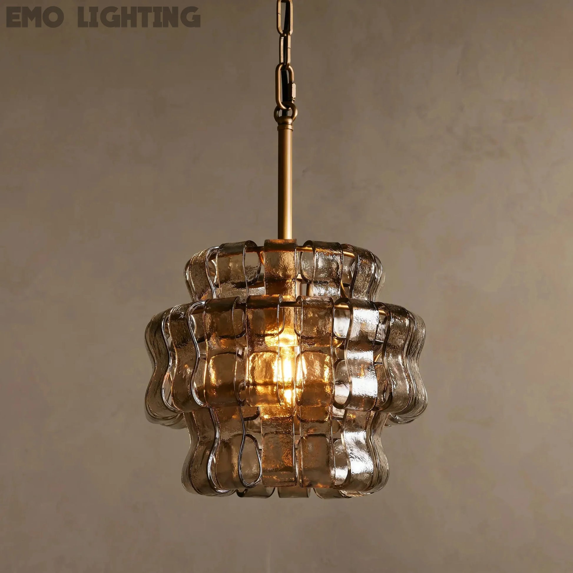 Inspired by the famous Italian decorative glass, the ghiaccio chandelier artfully diffuses light through curved textured glass pieces. It features an electroplated brass finish to elegantly illuminate any room.