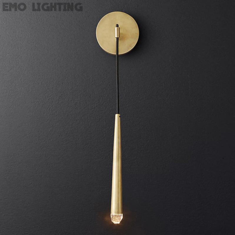 This wall sconce is made of solid brass. Inspired by minimalist lighting, it features a solid brass shape suspended by a thin black wire. Modern and simple design. It is perfect for hallways, living rooms, bedrooms and halls. This wall sconce has a stylish design for your home.