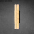 Audubon captures the spirit of 1960s Italian minimalism, featuring two prisms of alabaster mounted on a solid brass frame. The collection is both striking and restrained, evoking the warmth of candlelight through elongated LEDs that cast beautiful light through the translucent stone.