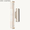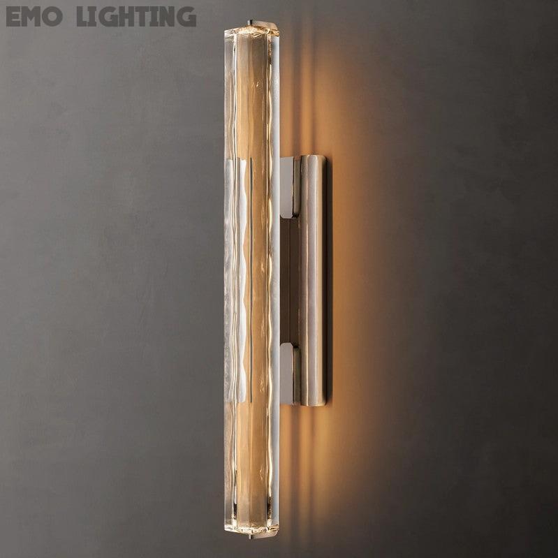 Capturing the spirit of 1960s Italian minimalism, Audubon appears to cascade from above with ten prisms of hand-polished K9 crystal on vertical brass drops. At once striking and restrained, the collection is the warmth of candlelight with elongated LEDs that shed beautiful light through the undulating texture of the glass. |