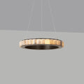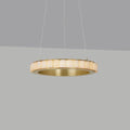 The Avalon Collection is inspired by the legendary island renowned for its enchanting tales of light and shadows. This collection captures the mystical allure of Avalon through its exquisite use of alabaster and The AVALON collection of striking chandeliers features a continuous ring of alabaster columns, which seemingly float, creating the mystical illusion of its namesake. Each column is illuminated, highlighting the unique striations of every piece of alabaster. The stainless steel ring frames the natural stone, creating a powerful contrast, showcasing the translucent quality of the alabaster.