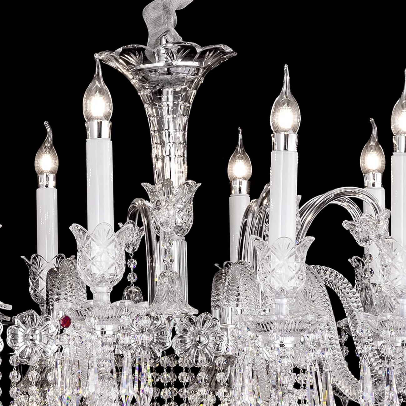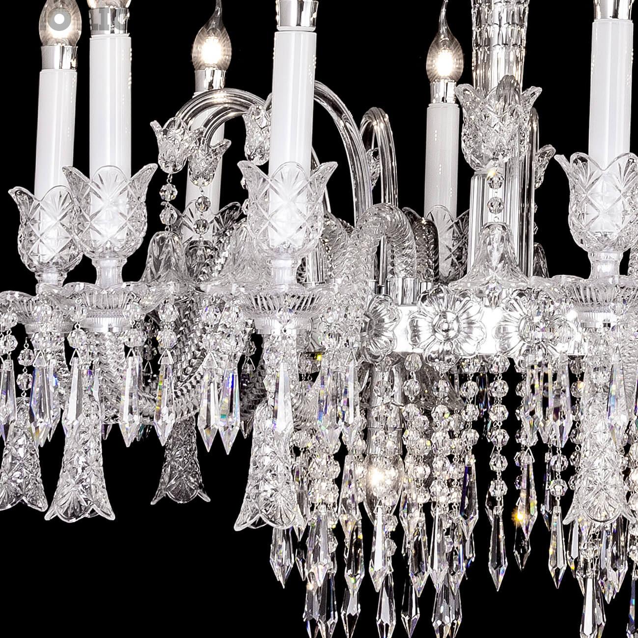 Composed of asfour crystal and 24pb glass. The materials converge to create a stunning interplay of light and clarity. The 14 lights. Compatible with e14/e12 bulbs. Cast a warm glow. Elevating the ambiance of your space. Finished in chrome. The metal accentuates the clear color palette. Contributing to its contemporary allure.