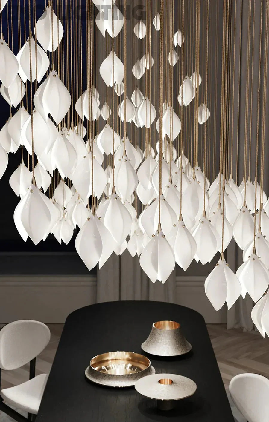 Select from glass, crystal, fabric, or metal finishes, with customizable plating and painting options to align with your project’s interior palette.