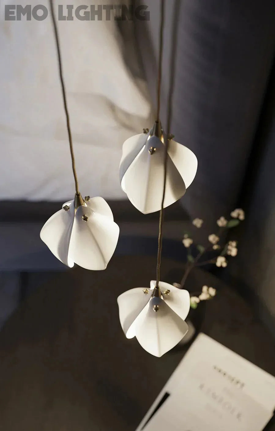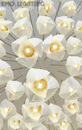 - The stylised Bloom buds are lit from within creating a soft glow through the soft matte or gloss translucent porcelain petals. Buds are accented in gold with plated fixings and fine silk braided cable to bring a timeless opulence to the installations.