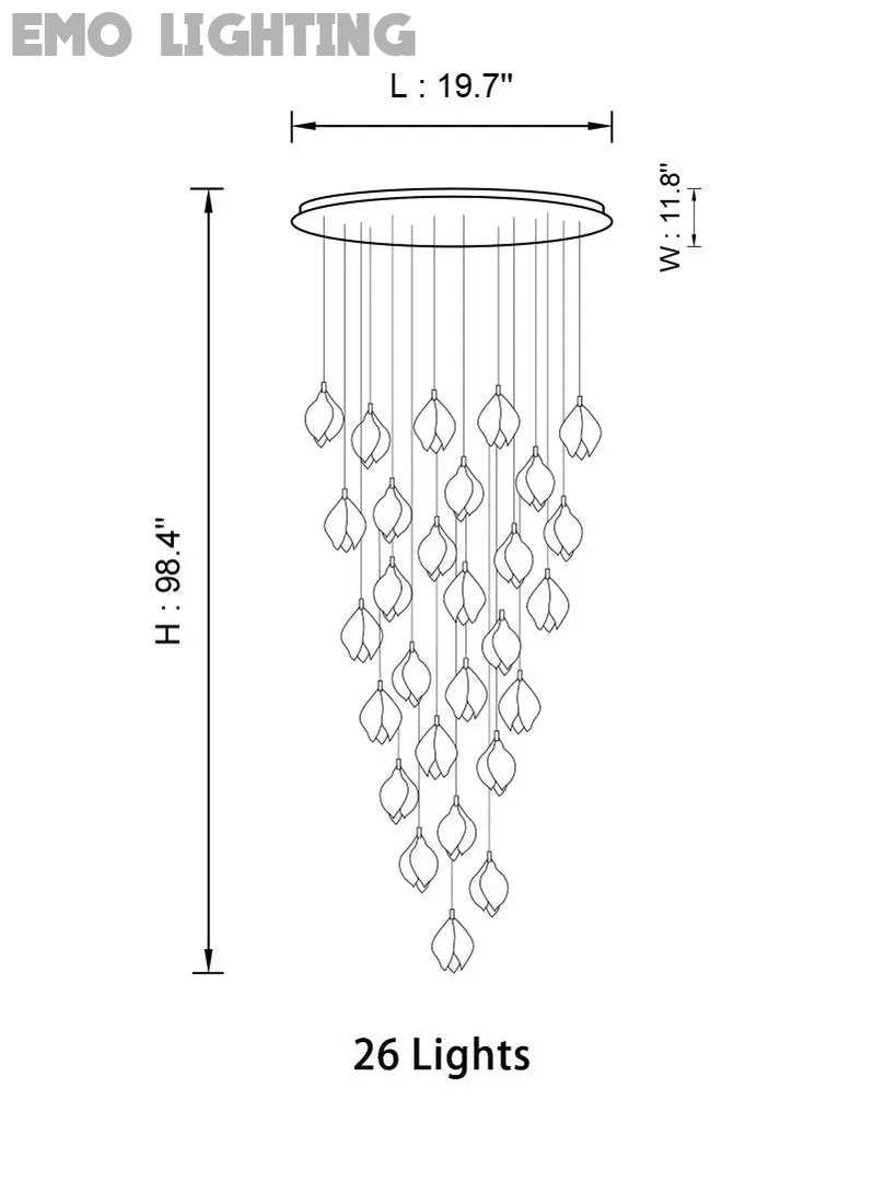 - 26 Lights: Ellipse style | L 19.7in. W 11.8in. H 98.4in