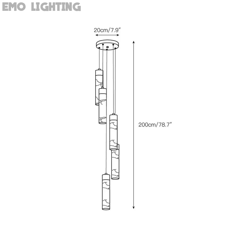 5 heads D 20cm x H 200cm / ∅ 7.9″ x H 78.7″. (78.7" hanging wire)