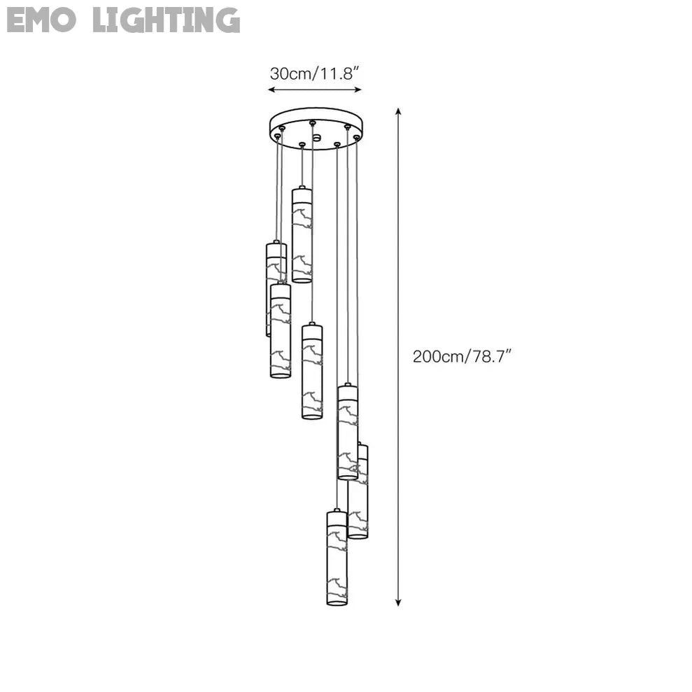 7 heads D 30cm x H 200cm / ∅ 11.8″ x H 78.7″. (78.7" hanging wire)
