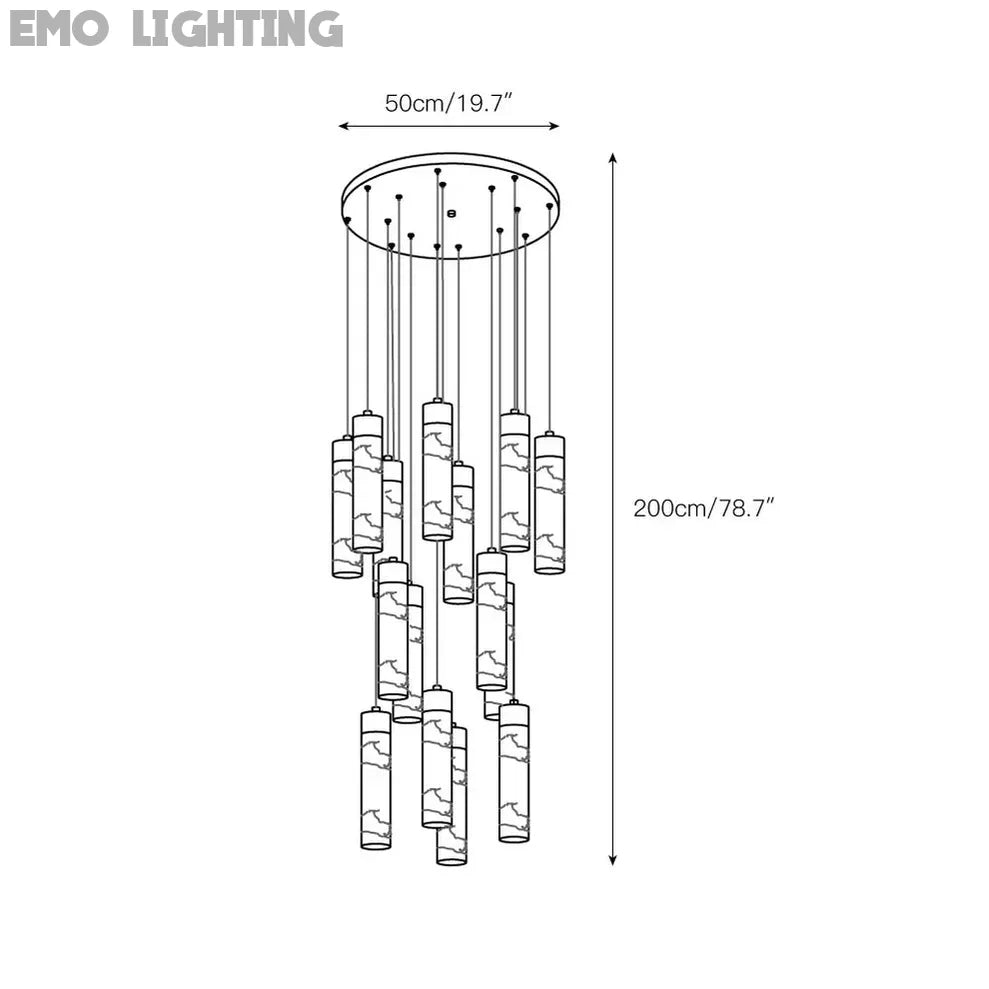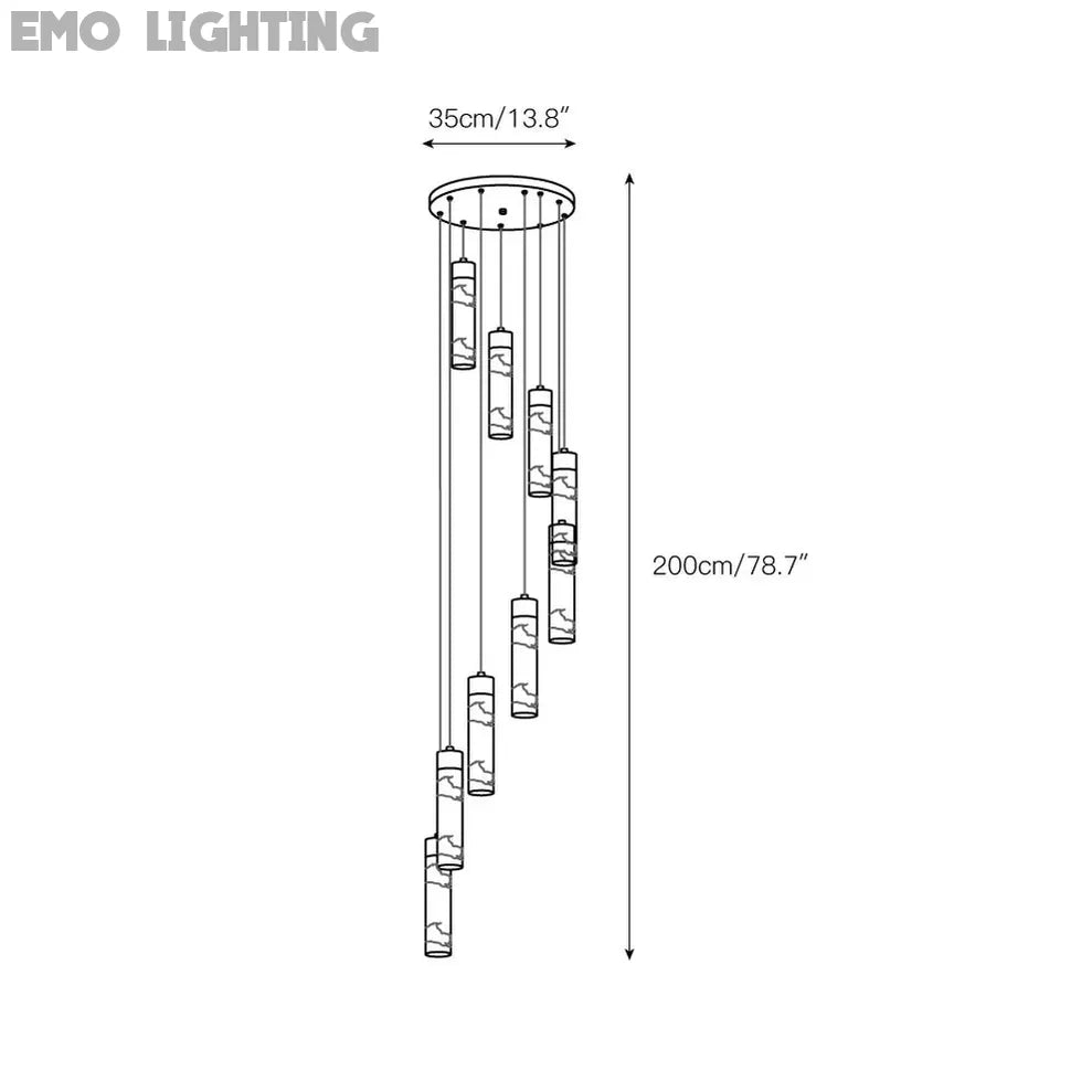 9 heads D 35cm x H 200cm / ∅ 13.8″ x H 78.7″. (78.7" hanging wire)