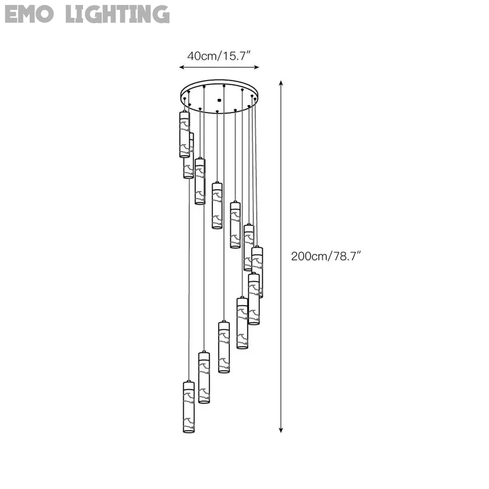 12 heads D 40cm x H 200cm / ∅ 15.7″ x H 78.7″. (78.7" hanging wire)