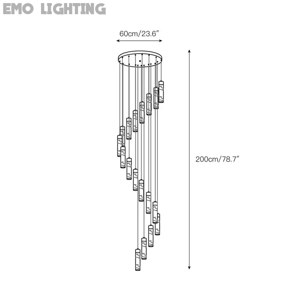 18 heads D 60cm x H 200cm / ∅ 23.6″ x H 78.7″. (78.7" hanging wire)