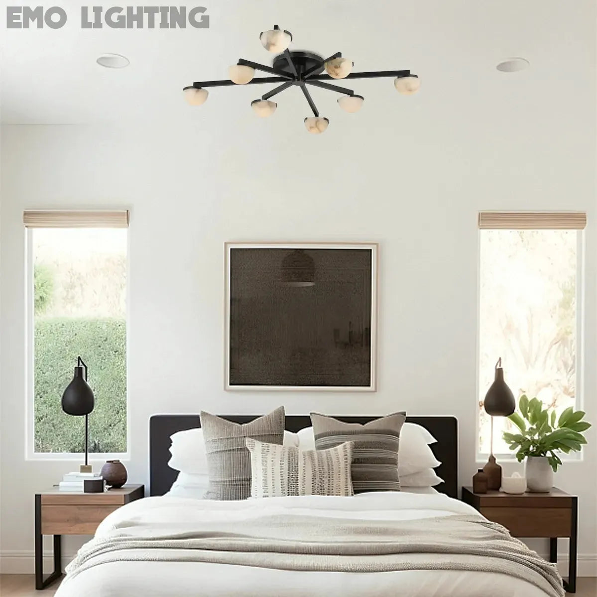The material of alabaster is labaster and copper, this series is a simple design with a modern style, its stylish style highlights its beauty and makes it give a warm and natural feeling while ensuring the light effect Feel.