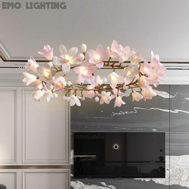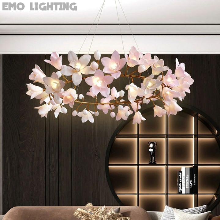 Crafted with exquisite ceramic material, this chandelier showcases a gorgeous floral design, exuding a rich artistic atmosphere. Each blossom is meticulously carved, revealing intricate textures and delicate colors, making the entire fixture a testament to grace and artistic beauty. Given that this product is made-to-order, it requires approximately 2-3 weeks for production. If you're considering a purchase, we kindly ask for your patience and understanding of this timeframe. Thank you for your interest and cooperation. Made entirely of solid brass, the chandelier embodies a sense of sturdiness and nobility. The lustrous shine of brass complements the charm of the ceramic blossoms, creating a perfect fusion of temperament and texture. Moreover, the brass material ensures durability and long-lasting performance, providing you with enduring lighting enjoyment. |