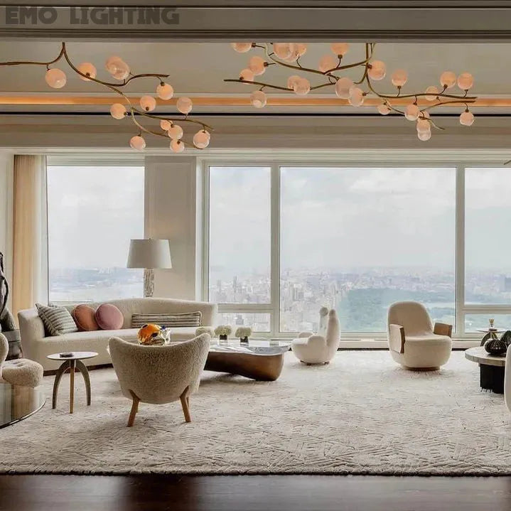 Contemporary Hand-blown Glass Globes Branch Chandelier for Dining Room Living Room and Kitchen Island