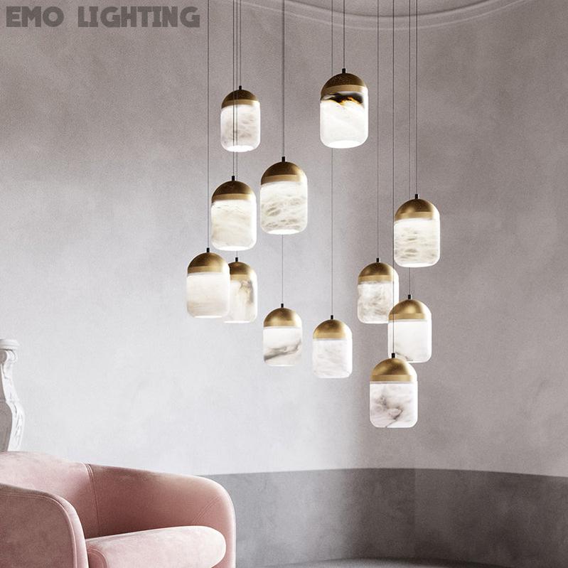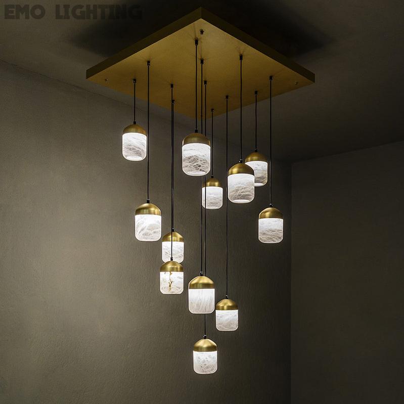 Cascade Modern Minimalist Alabaster Staircases Pendant Chandelier