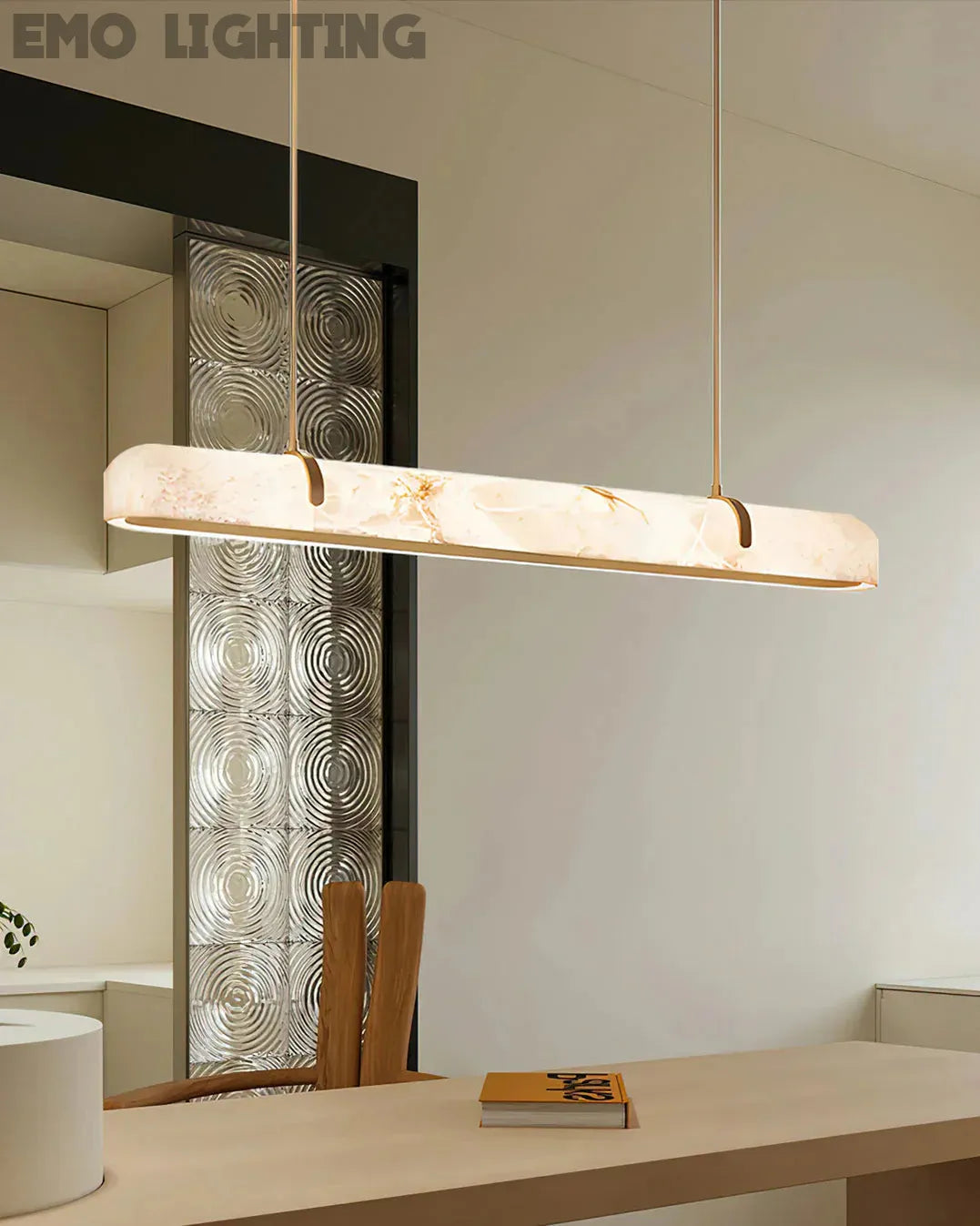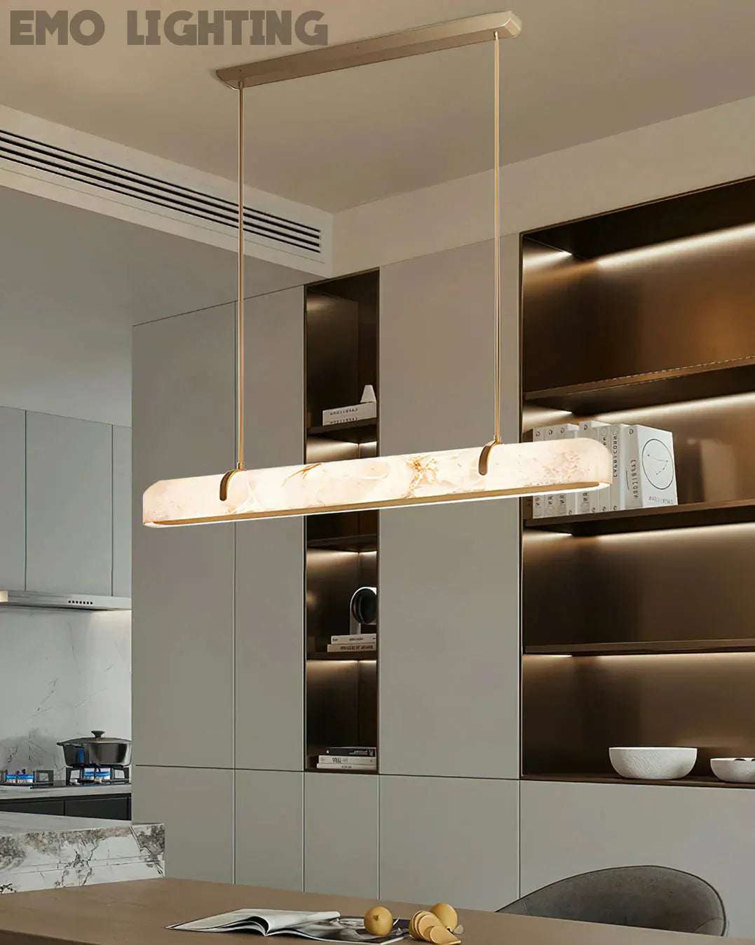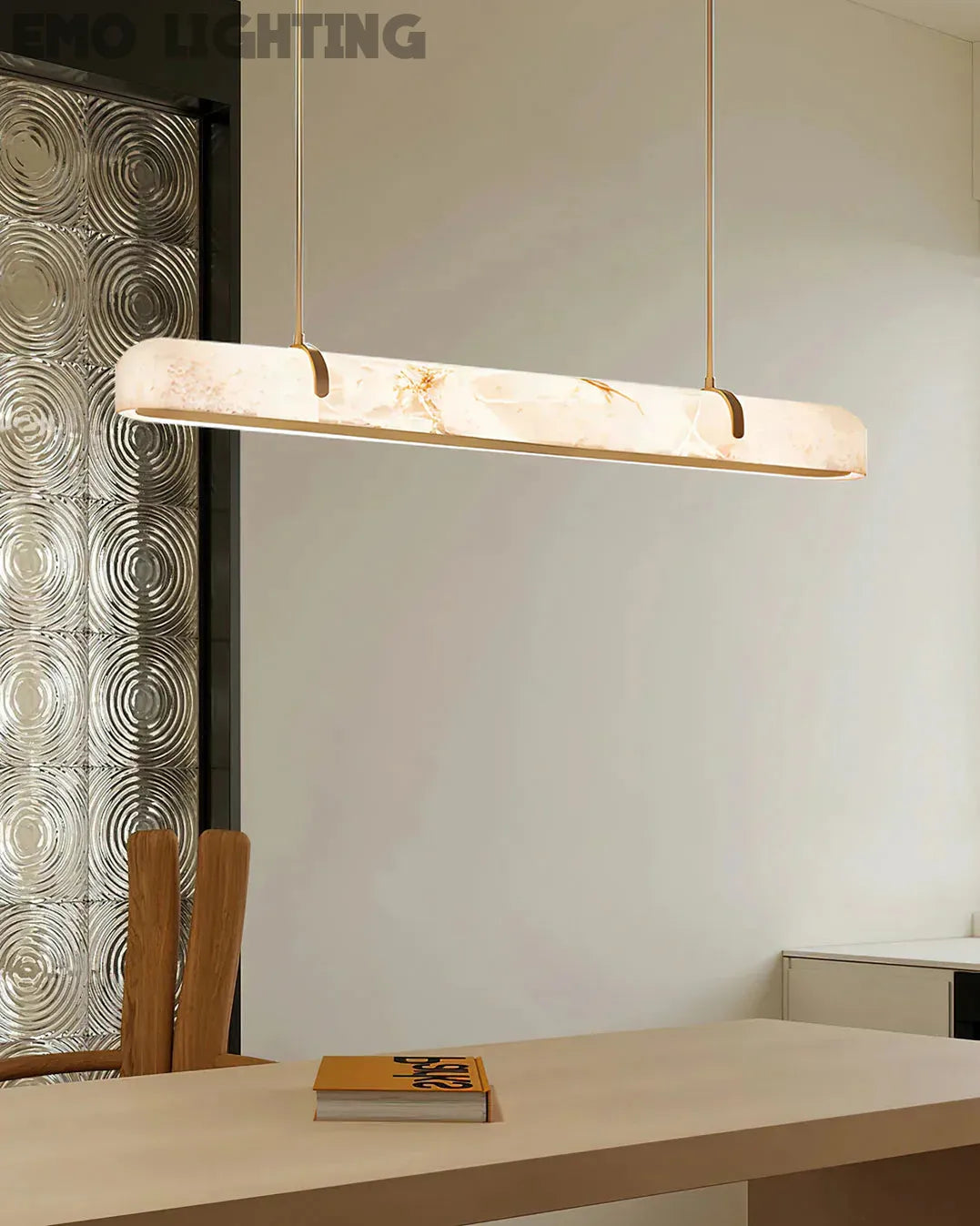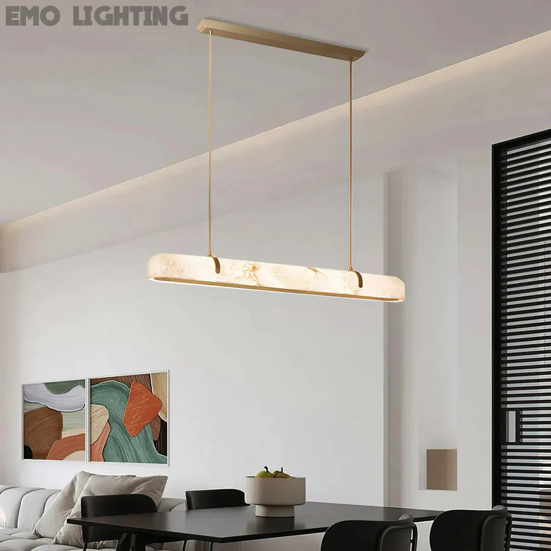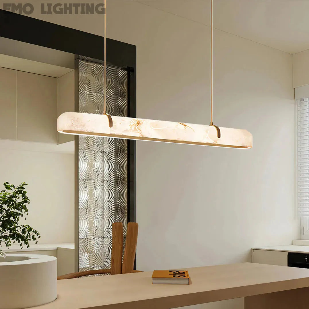 Eamon Linear Alabaster Chandelier, Kitchen Island Pendant Light