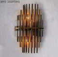 This Wall Sconce consists of a metal frame, inspired by industrial design in the 1920s, which is used for decorative lighting. The multi-layer brass tubes give people a unique feeling