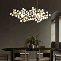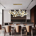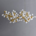 The Escamoles Modern Linear Grape Chandelier is inspired by the idea of the ancient flora. The frame of the branches are handmade, the glasses are with milk white and gold grape shaped balls. It is such an elegant, charming fixture for banquet, living room foyers.