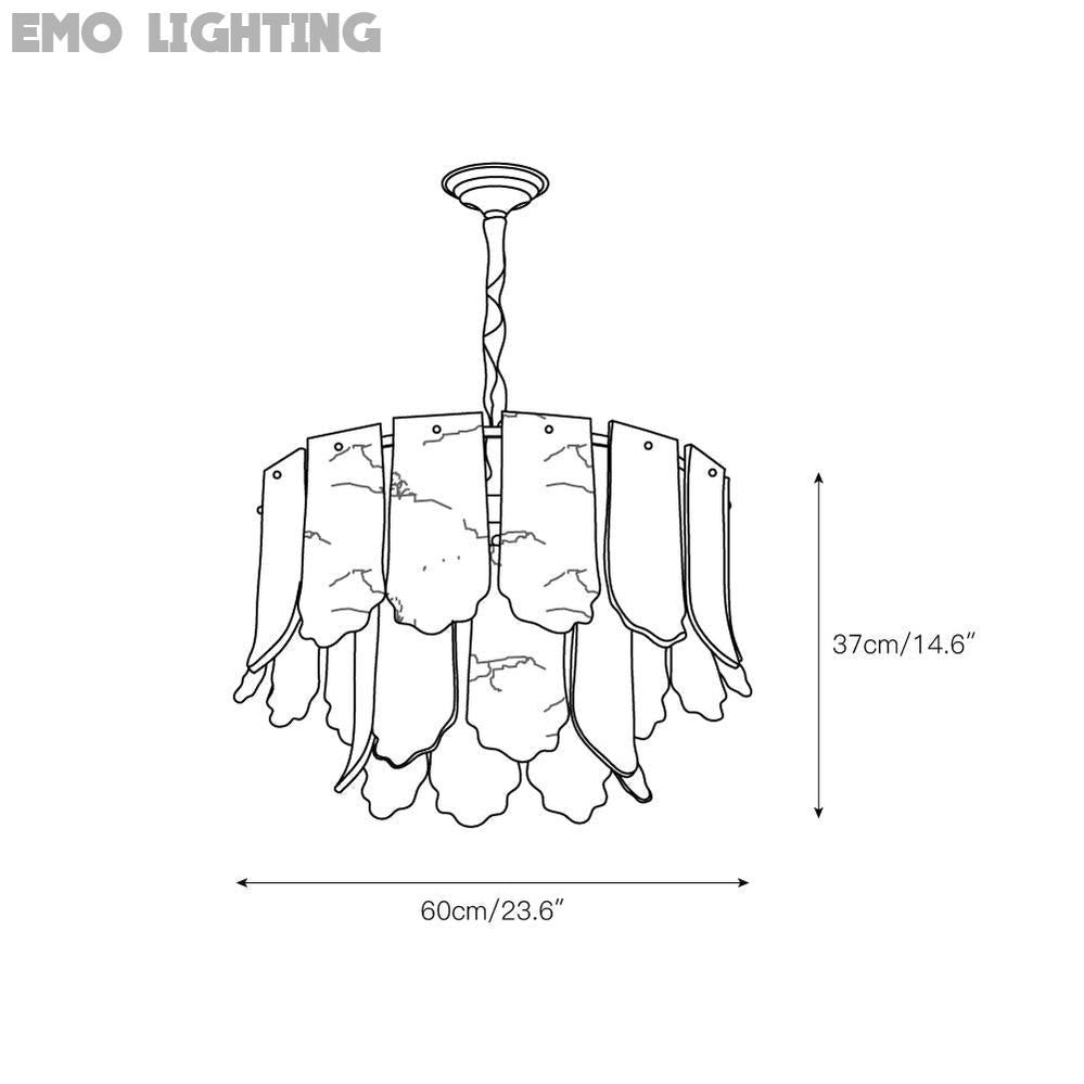 9 heads D 60cm x H 37cm / ∅ 23.6″ x H 14.6″. (12" hanging chain.)