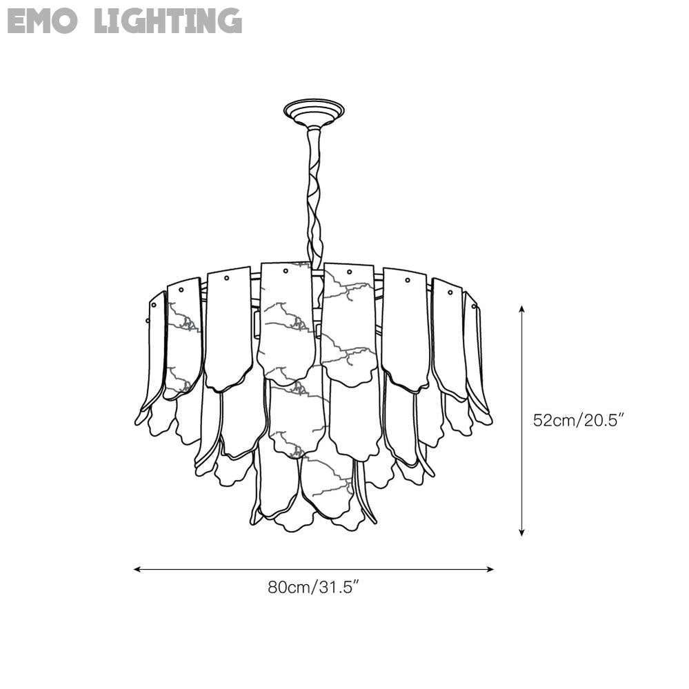16 heads D 80cm x H 52cm / ∅ 31.5″ x H 20.5″. (12" hanging chain.)