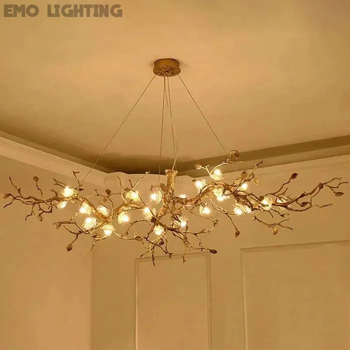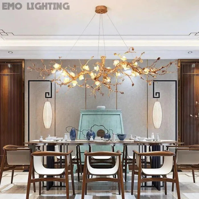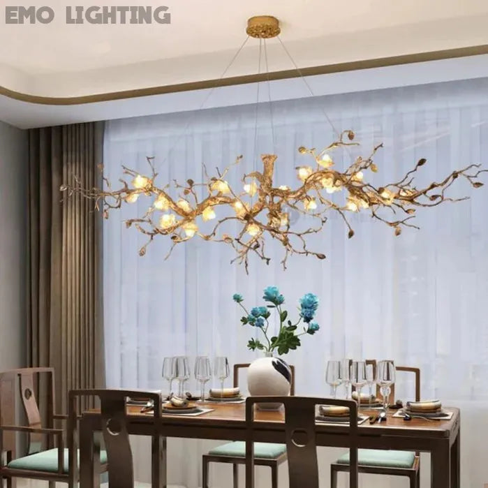 Exquisite Glass Flower Copper Tree Branch Chandelier
