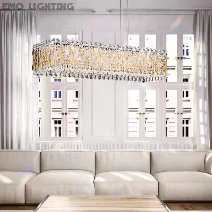 Extra Large Luxury Rectangle Crystal Pendant Chandelier for Living/Dining Room/Kitchen Island