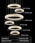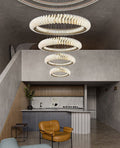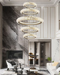 Extra Large Multi-layers Rings Crystal Chandelier Modern Art Waves Creative Pendant Light For High-ciling Foyer/Hallway/Staircase