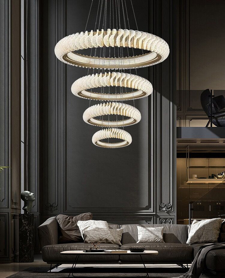 Add or reduce layers to transform a minimal fixture into a bold multi-tier chandelier, ideal for grand entrances or large dining spaces. -