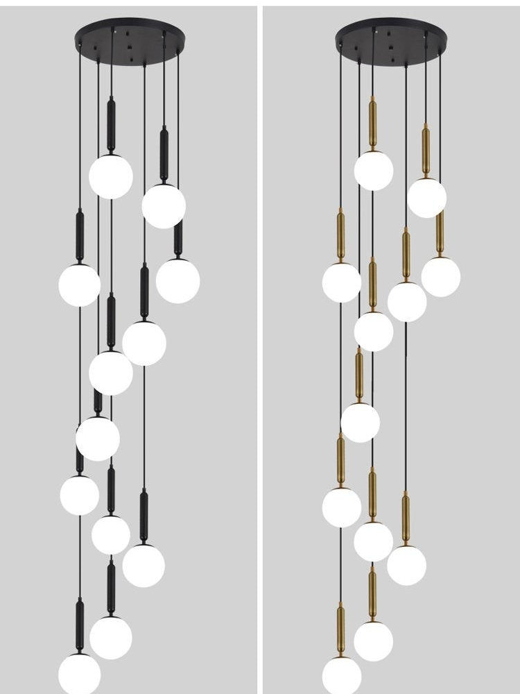 The whole body of the lamp is made of iron and glass. It is designed as a simple and modern style. It effectively reduces the dead angle of lighting and gives you the best experience with light. Elegant, neat and simple appearance, suitable for your different home decoration styles. Create a perfect minimalist style living environment for your home. Suitable for different living styles and places with high ceilings, such as living rooms, staircases, etc.