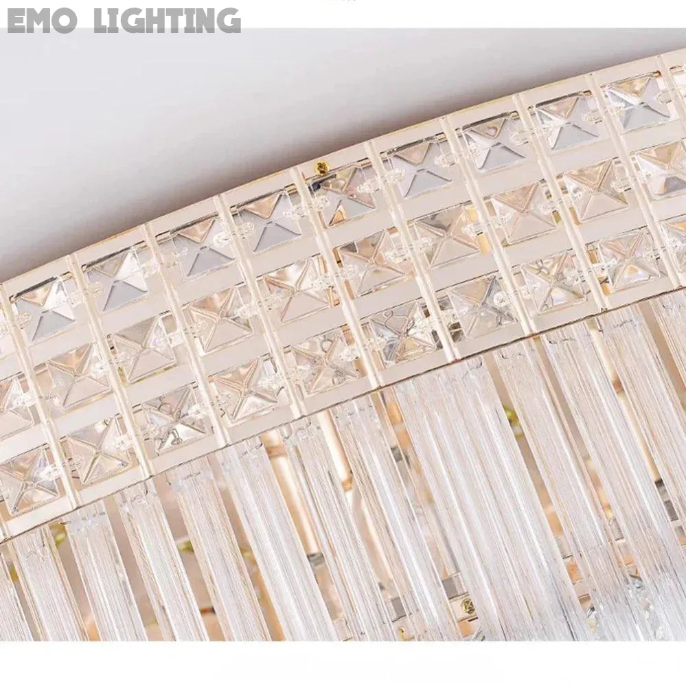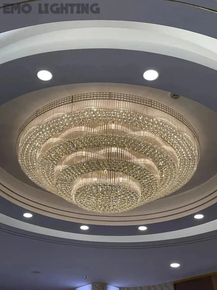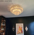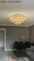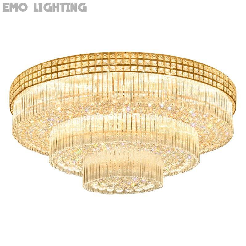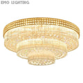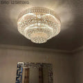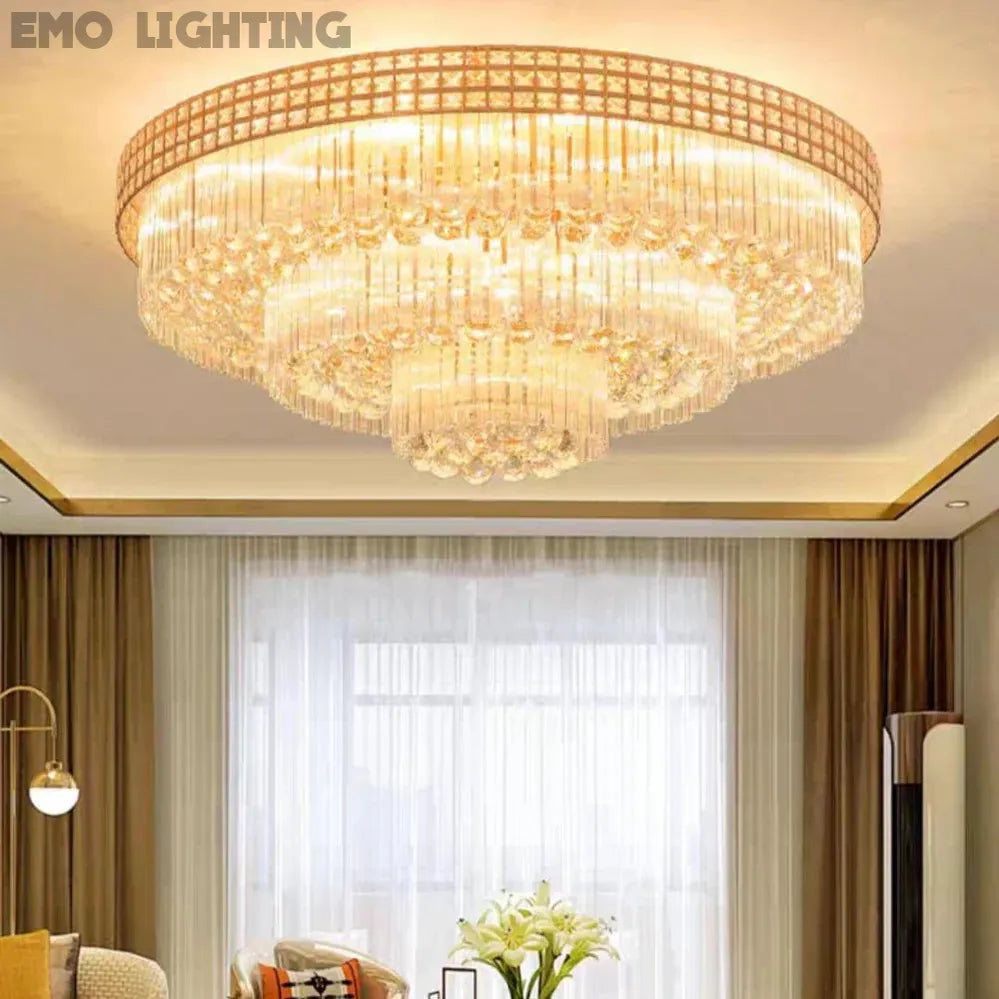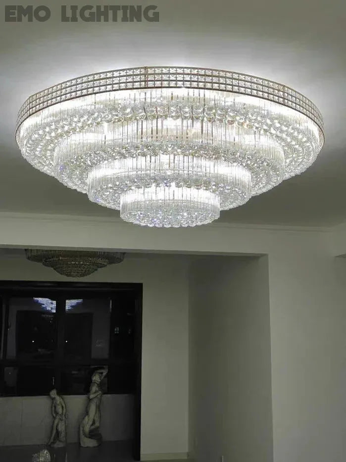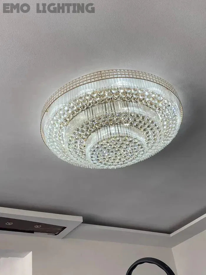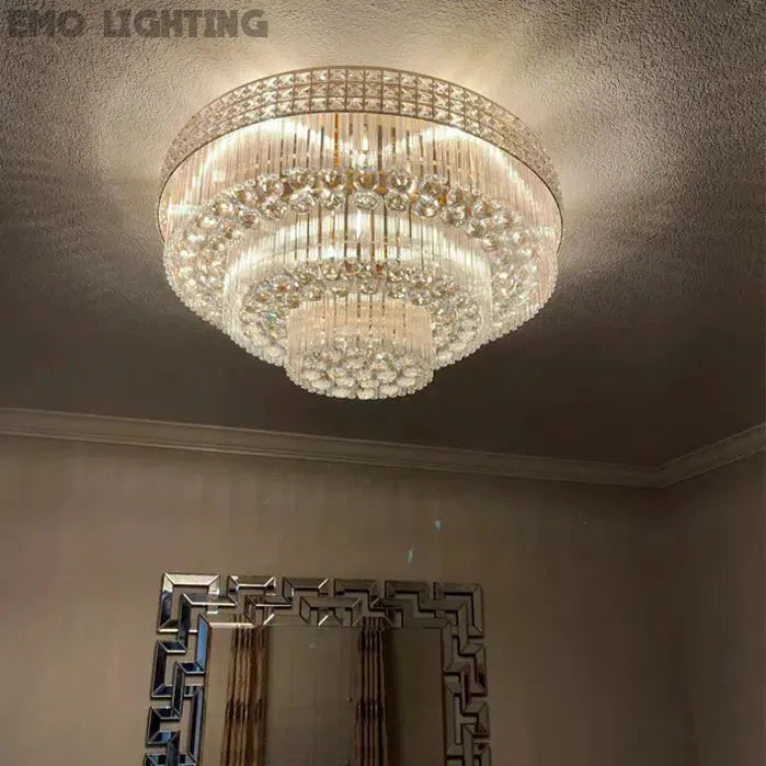 Extra Large Three Layers Round Luxury Flush Mounted Crystal Chandelier for Living Room