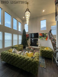 This multiple tiers and clear crystal chandelier is a classic option for a foyer or staircase. It is a popular choice for its elegant design and high-quality craftsmanship. If you prefer a more classic modern look. We highly recommend this chandelier.