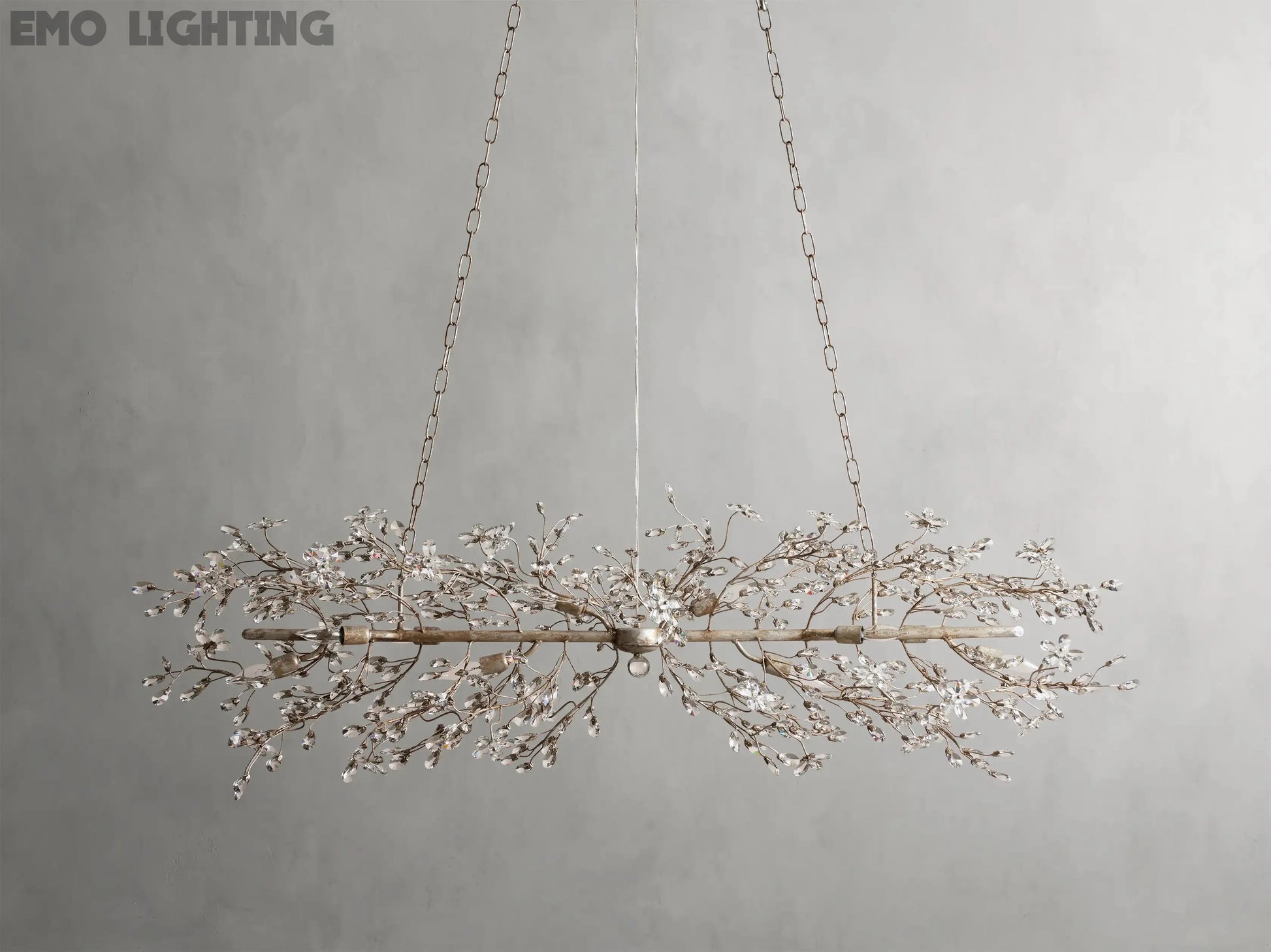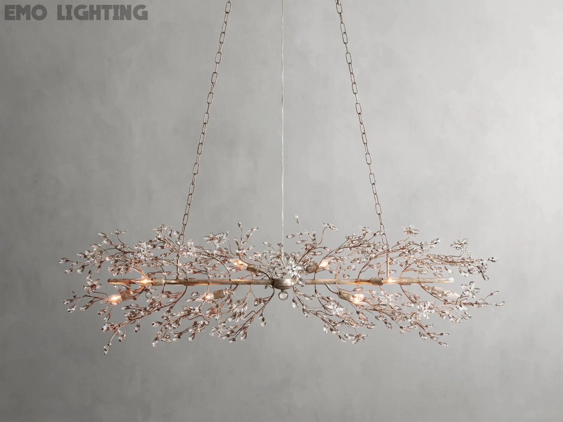 Our elegant Fiore Lighting Collection features luxurious crystal florals and drops, illuminating each branch-like form. Crafted from solid iron by our artisan partners in Italy and hand-finished with silver or gold leaf, each piece draws inspiration from the beauty of nature and showcases exceptional craftsmanship.