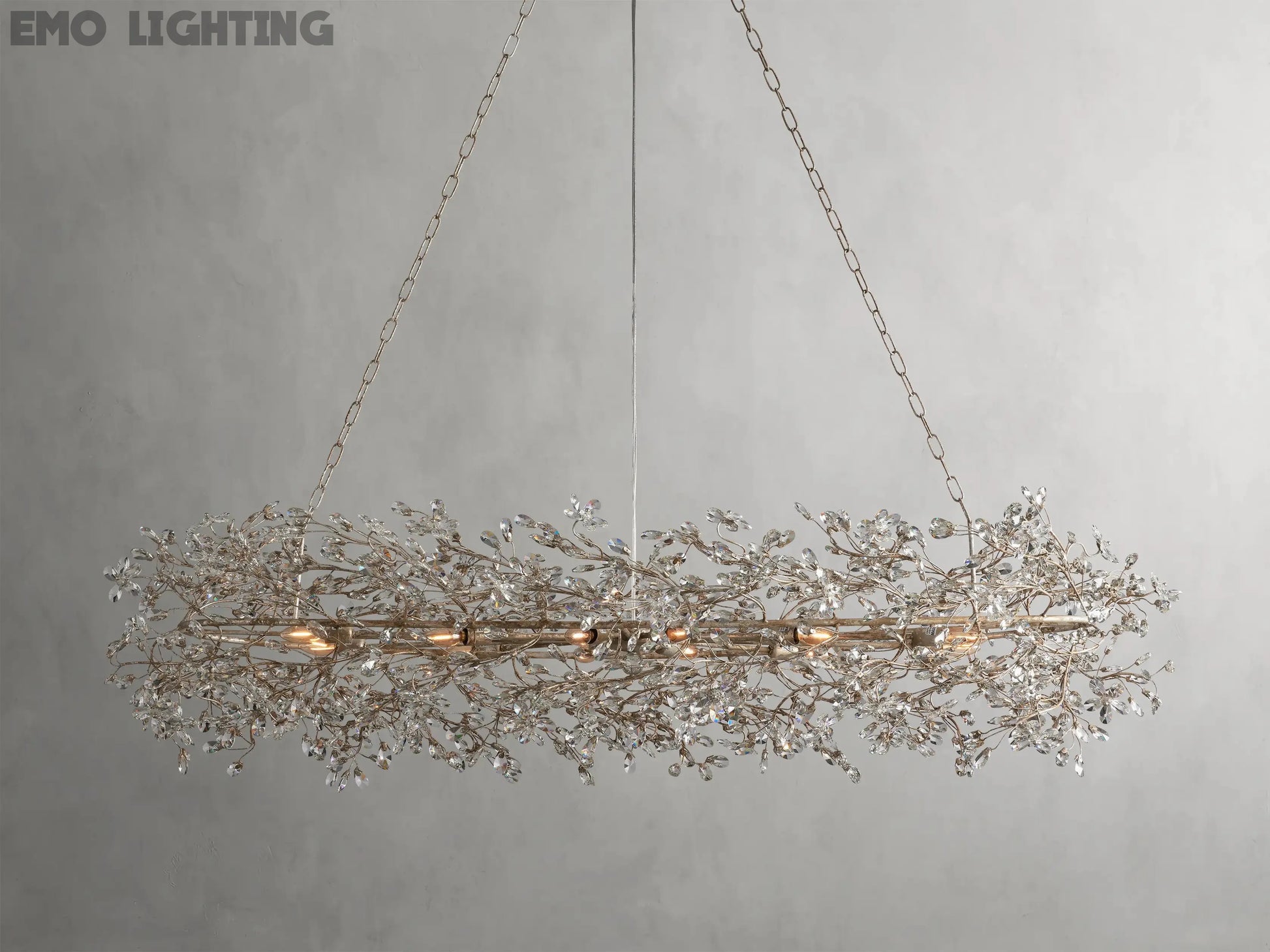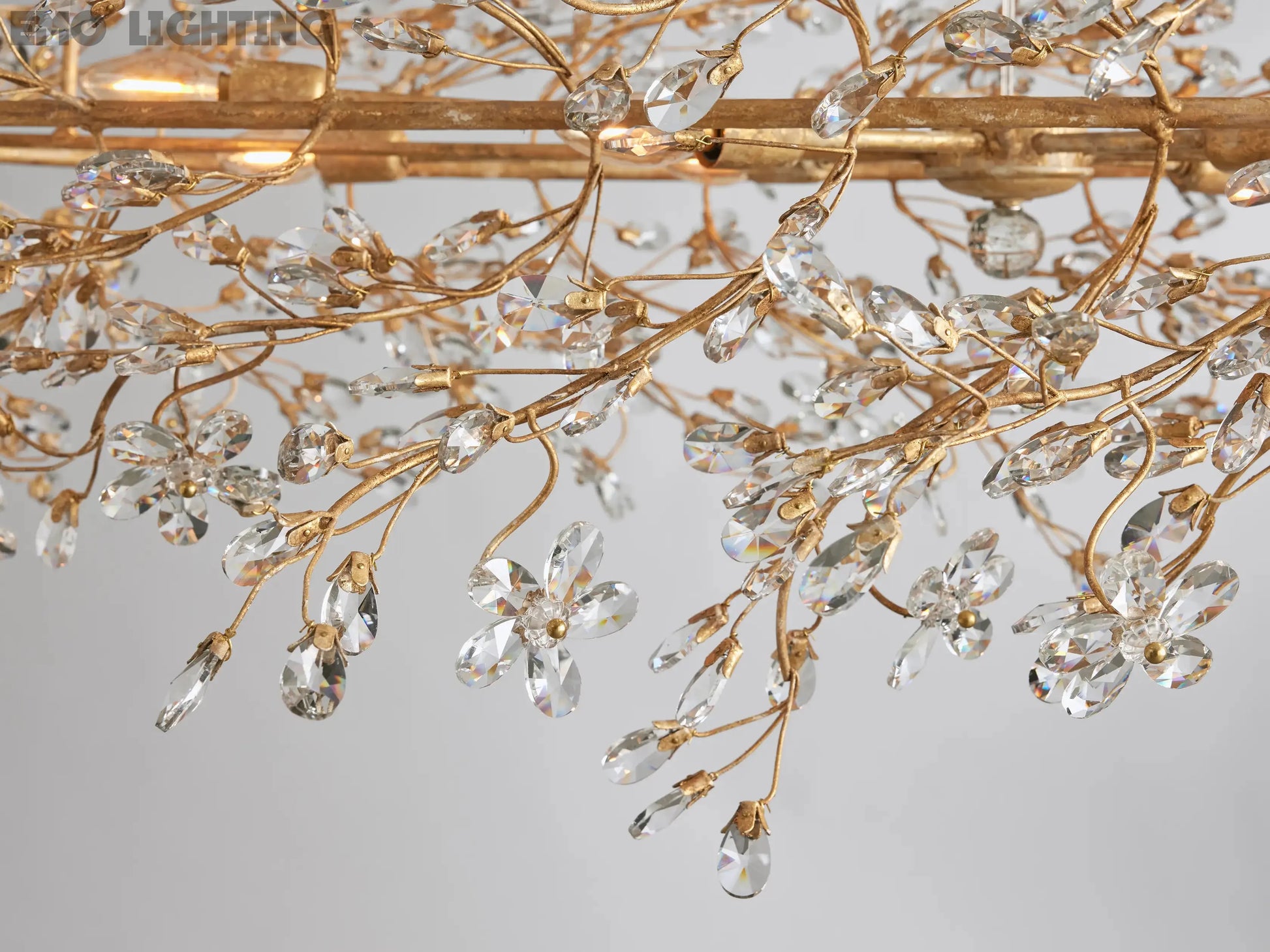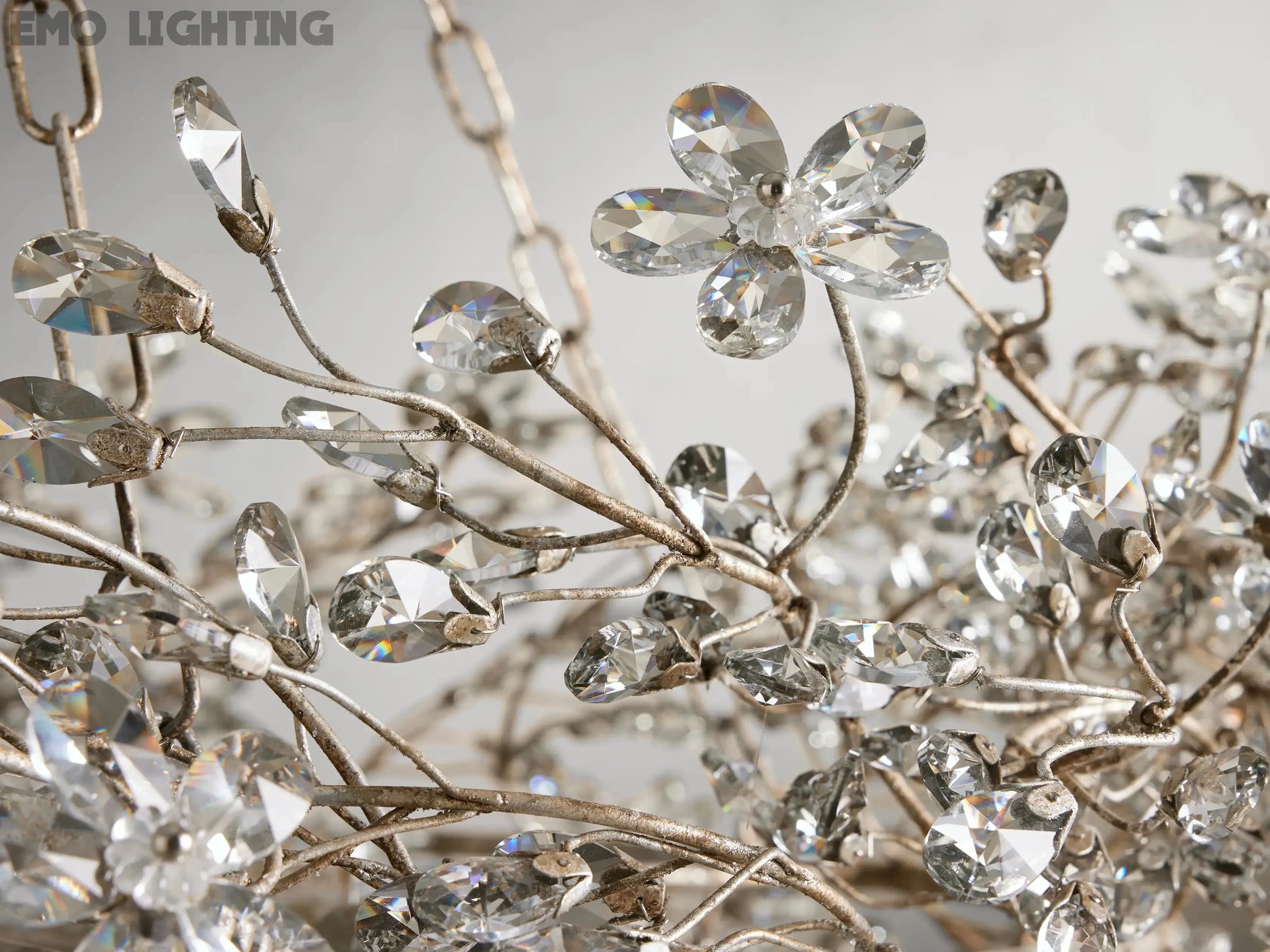 Our elegant Fiore Lighting Collection features luxurious crystal florals and drops, illuminating each branch-like form. Crafted from solid iron by our artisan partners in Italy and hand-finished with silver or gold leaf, each piece draws inspiration from the beauty of nature and showcases exceptional craftsmanship.