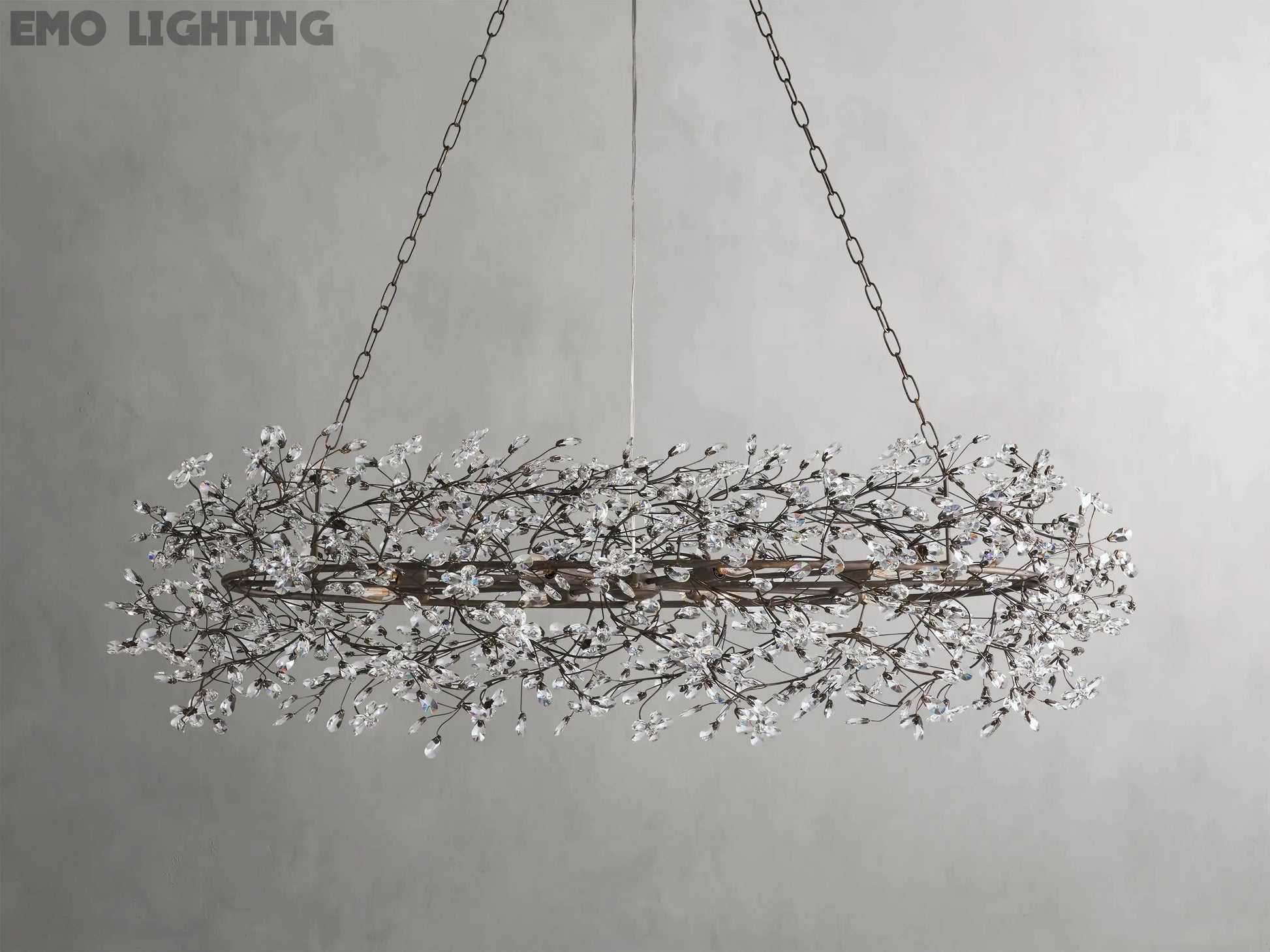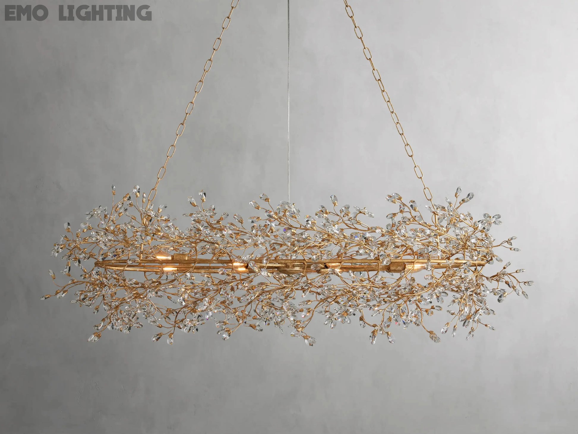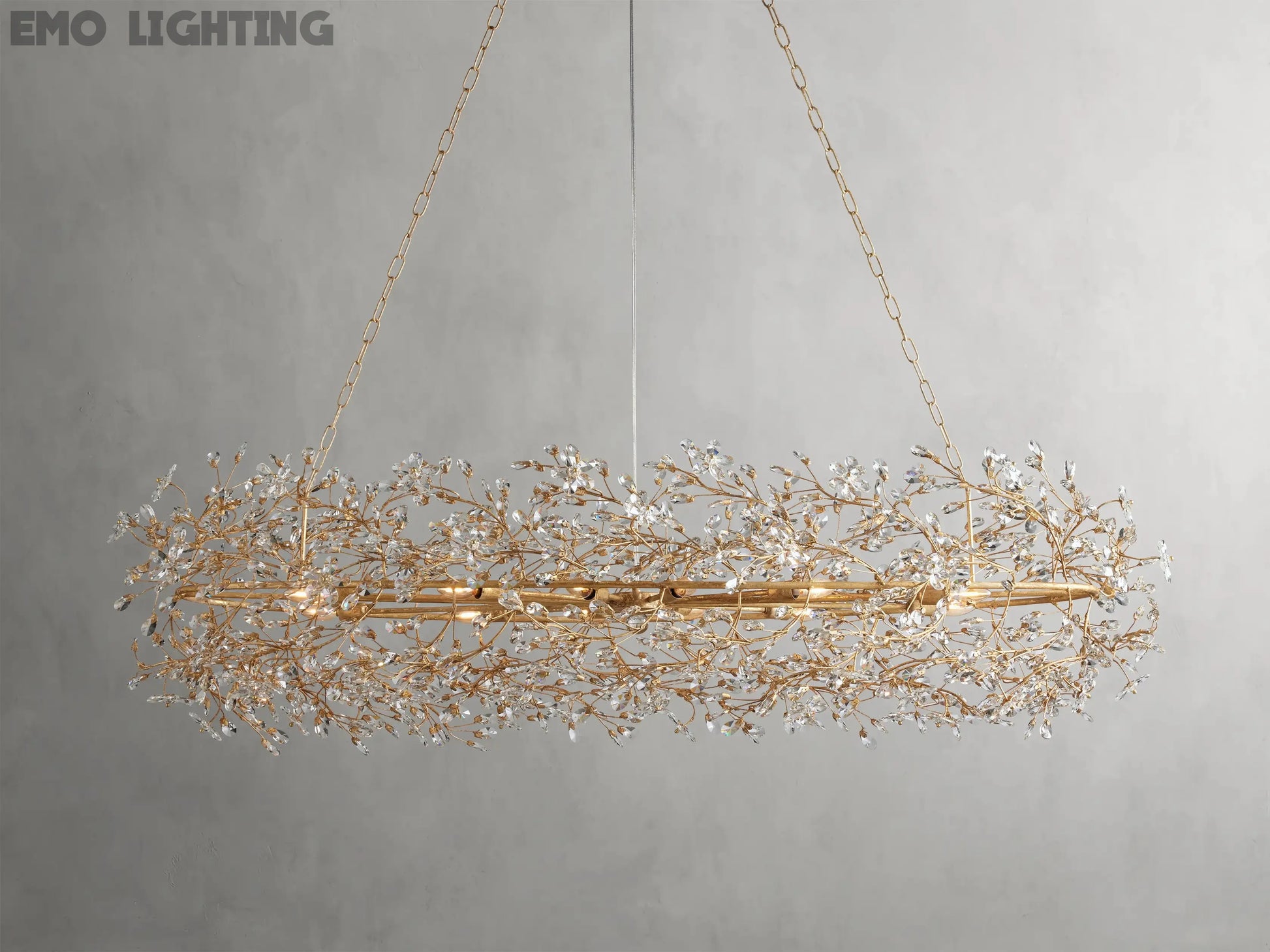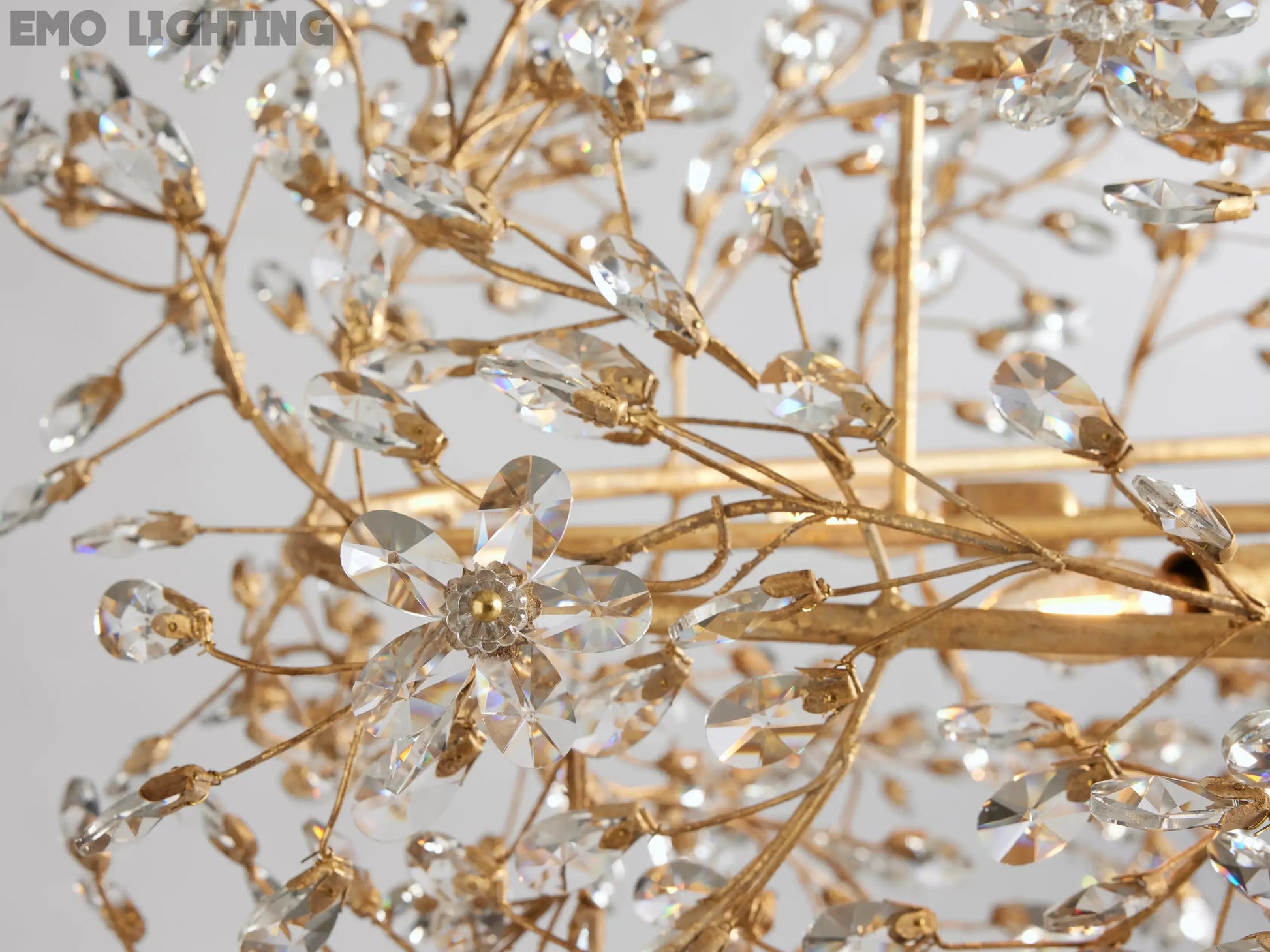 Our elegant Fiore Lighting Collection features luxurious crystal florals and drops, illuminating each branch-like form. Crafted from solid iron by our artisan partners in Italy and hand-finished with silver or gold leaf, each piece draws inspiration from the beauty of nature and showcases exceptional craftsmanship.