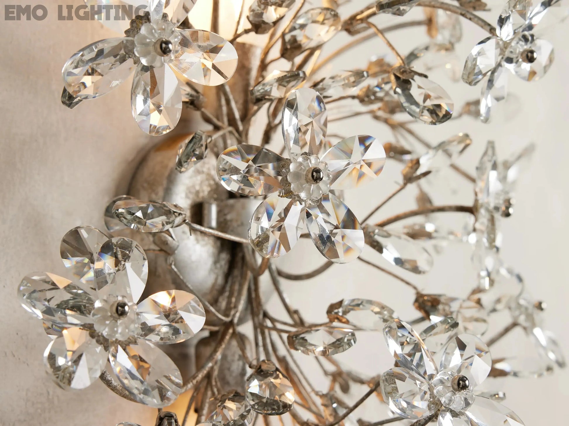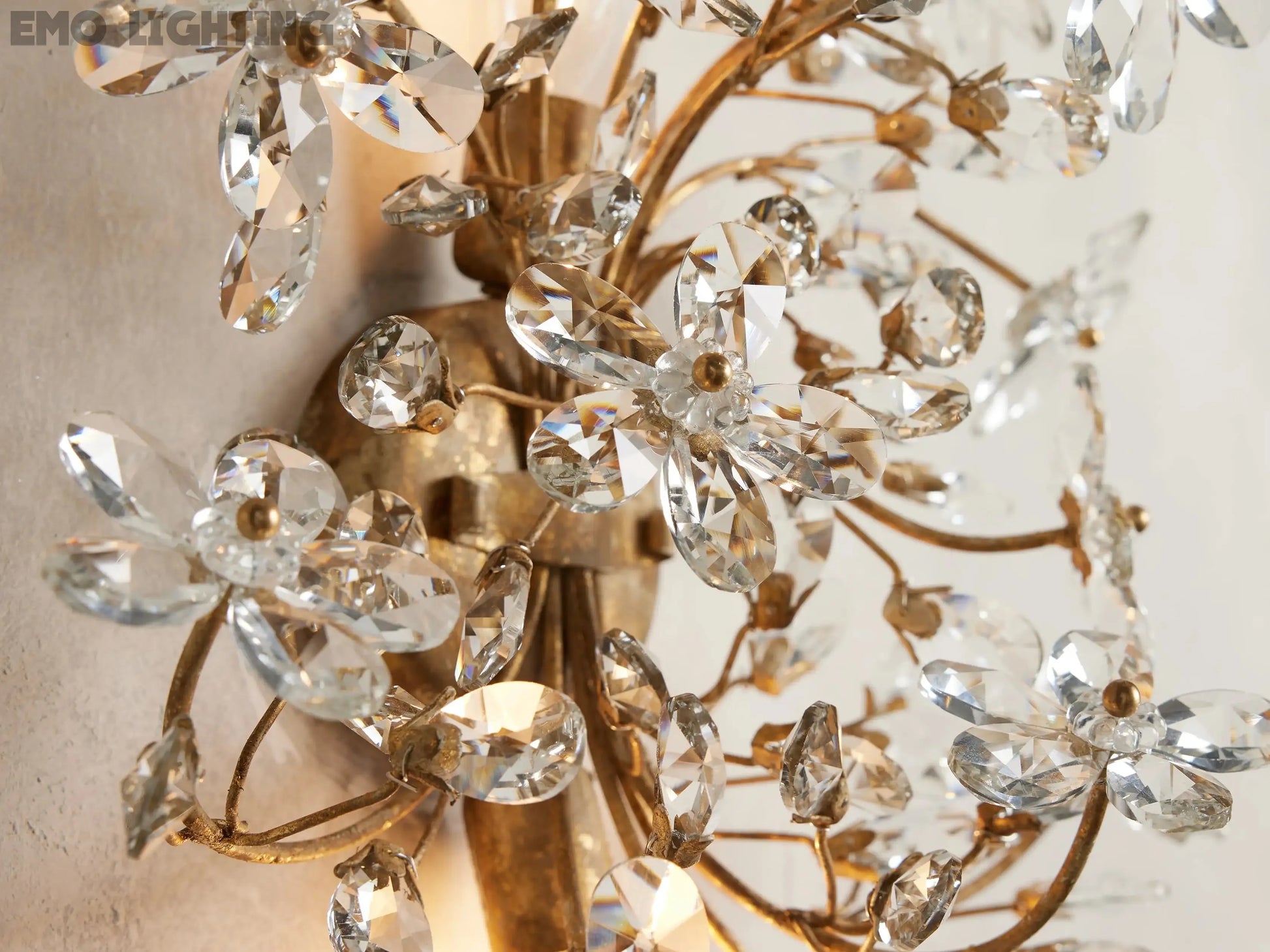 Our elegant Fiore Lighting Collection features luxurious crystal florals and drops, illuminating each branch-like form. Crafted from solid iron by our artisan partners in Italy and hand-finished with silver or gold leaf, each piece draws inspiration from the beauty of nature and showcases exceptional craftsmanship.