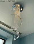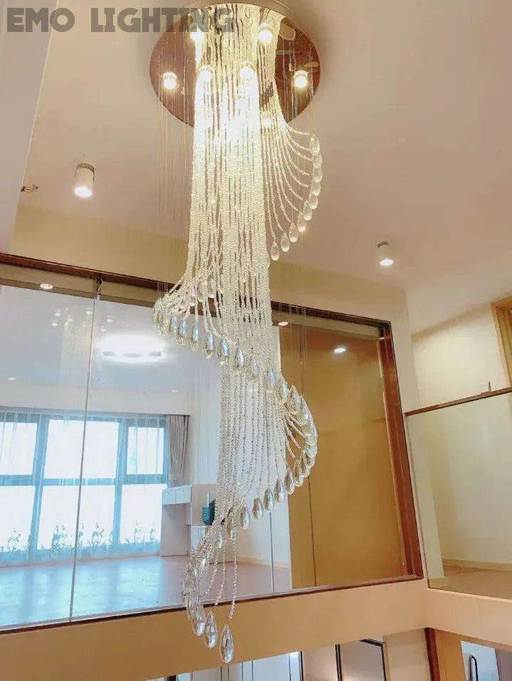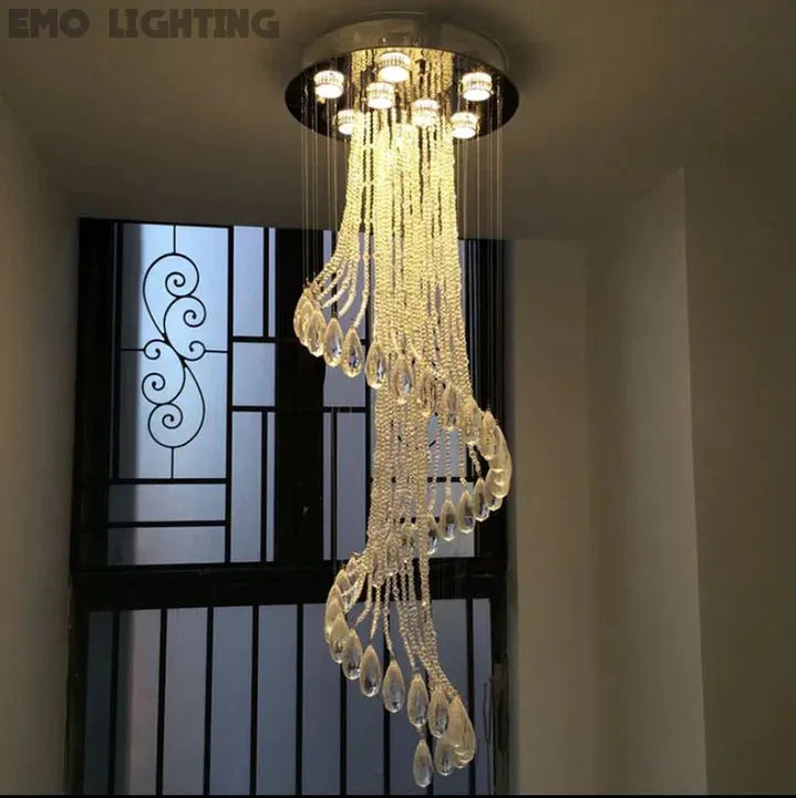 Flush Mounted Spiral Crystal Drops Chandelier Round LED Ceiling Lighting Fixture For Foyer Staircase/ Hotel Entrance