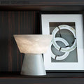 Iconic GAMA reinterprets the table lamp in contemporary fashion, in a play of curves and sleek lines. As for a classic lamp, Iconic GAMA consists of a base and a lampshade, separated by a delicate golden brass trim. The edges are fine and precise; the perfect proportions. The illuminated upper body magnifies the essential beauty of alabaster, providing a timeless elegance to this creation.