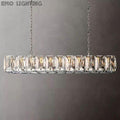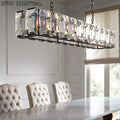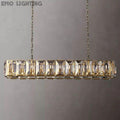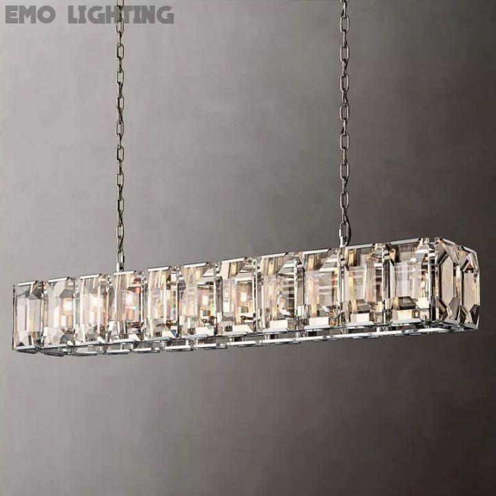Inspired by the German chandeliers of the 1970s, our fixtures evoke the boldness and glamour of that era. Using a circle of faceted crystal glass prisms to reflect and refract light, the designer captures the essence of an emerald-cut diamond.