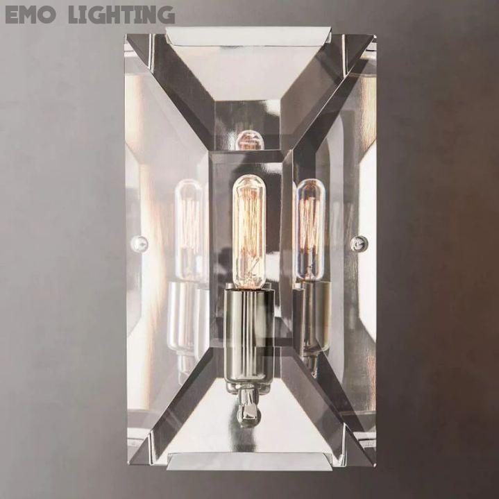 Inspired by the German chandeliers of the 1970s, our fixtures evoke the boldness and glamour of that era. Using a circle of faceted crystal glass prisms to reflect and refract light, the designer captures the essence of an emerald-cut diamond.