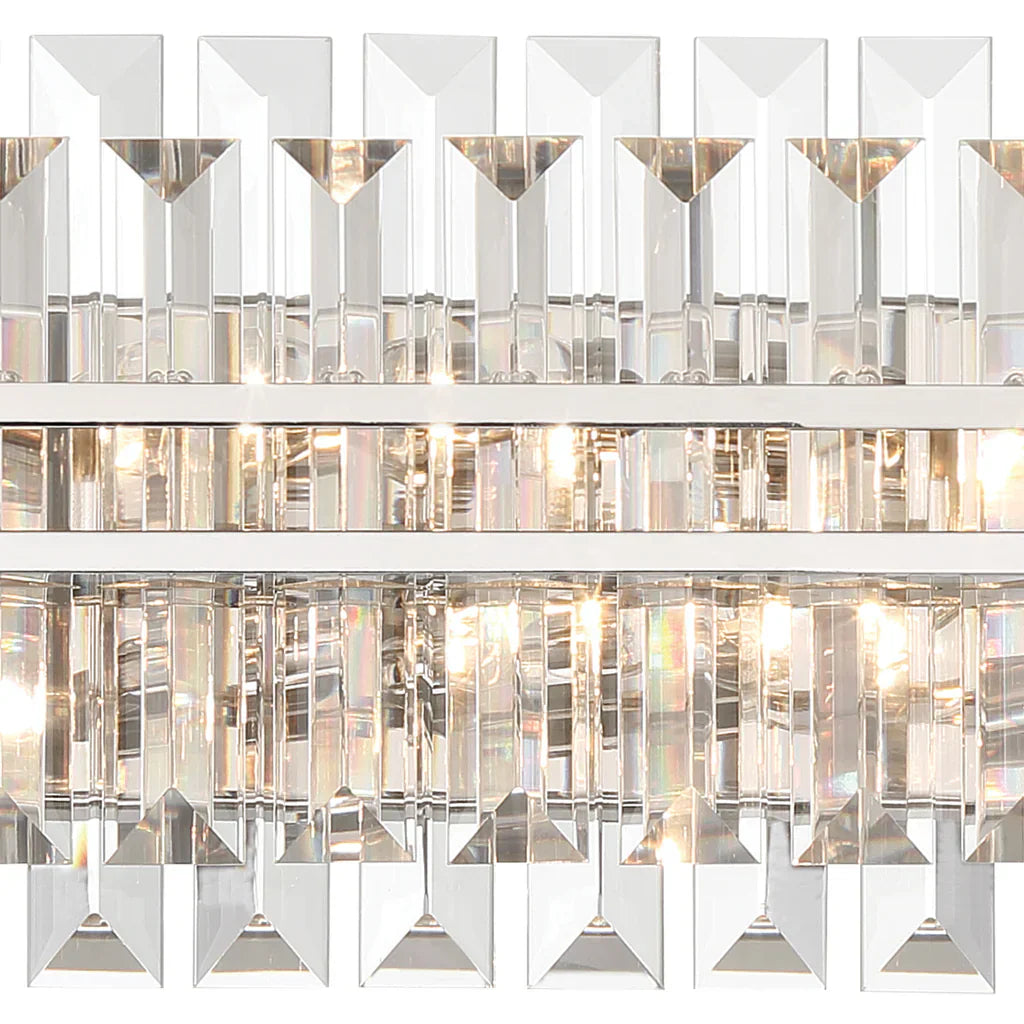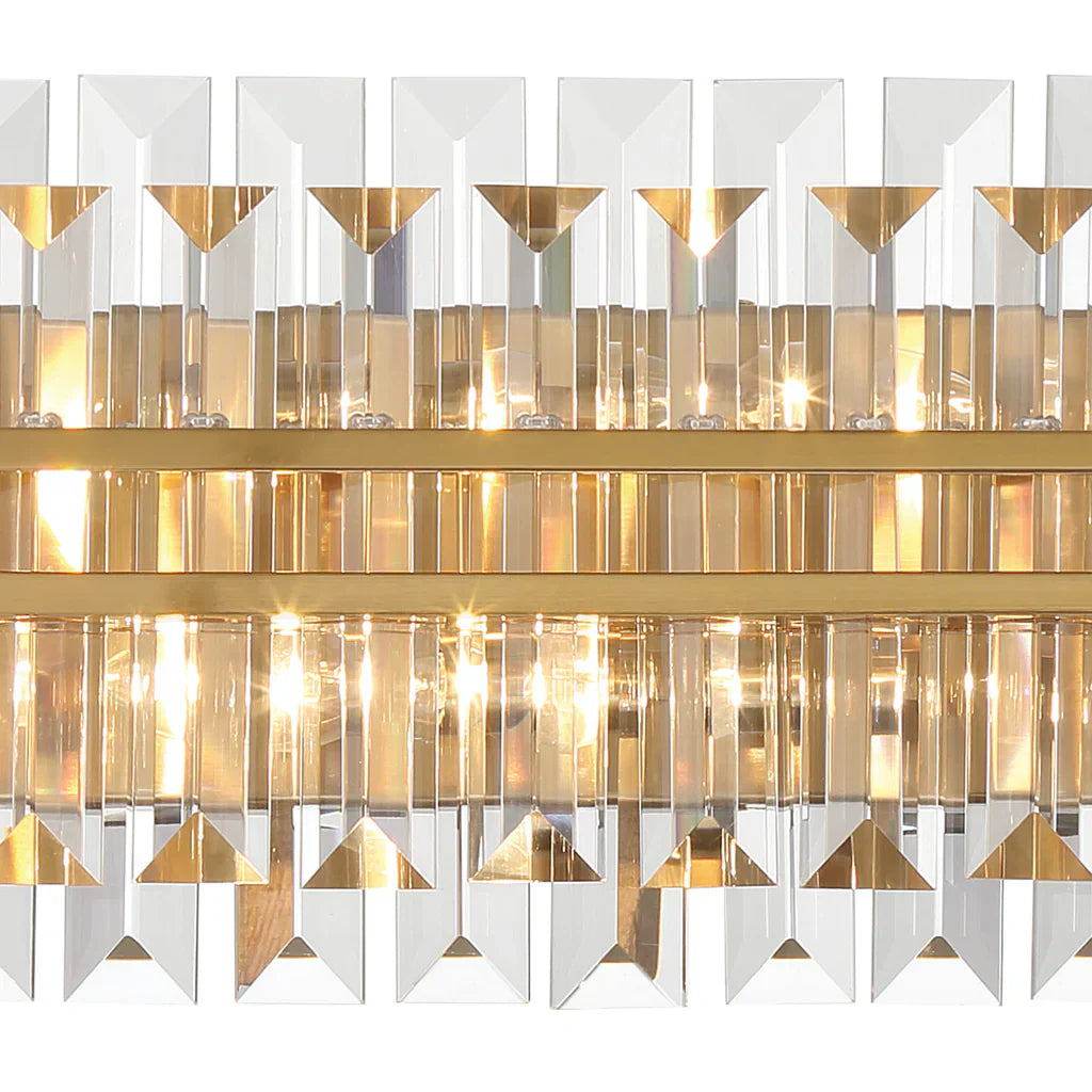 The Hayes Rectangular Wall Sconce 32" exudes elegance and modernity, making it an excellent addition to any bathroom or vanity area. Featuring four carefully arranged lights, this sconce is crafted with faceted crystal that captures and reflects light beautifully, creating a sparkling effect. The fixture is available in both Aged Brass and Polished Nickel finishes, offering a versatile, refined look that complements various decor styles. Perfect for adding a touch of luxury and functionality to your space, this wall sconce brings both style and practicality to your bathroom lighting.