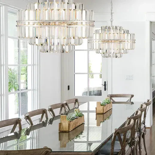 Add or reduce layers to transform a minimal fixture into a bold multi-tier chandelier, ideal for grand entrances or large dining spaces. -